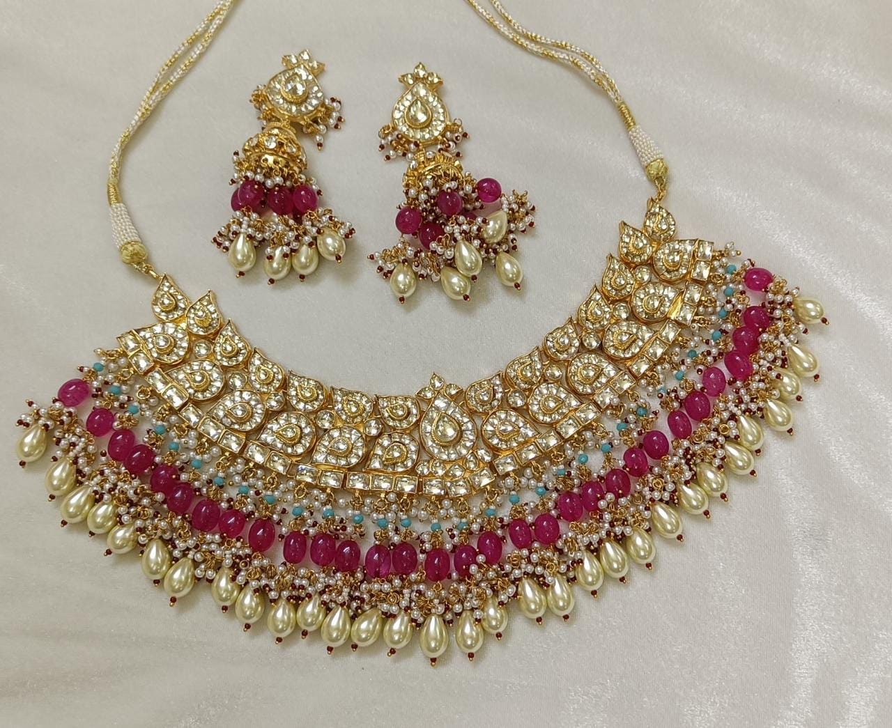 • It’s Handmade Gold Plated Indian Kundan Jewelry Necklace and Earrings Set.
