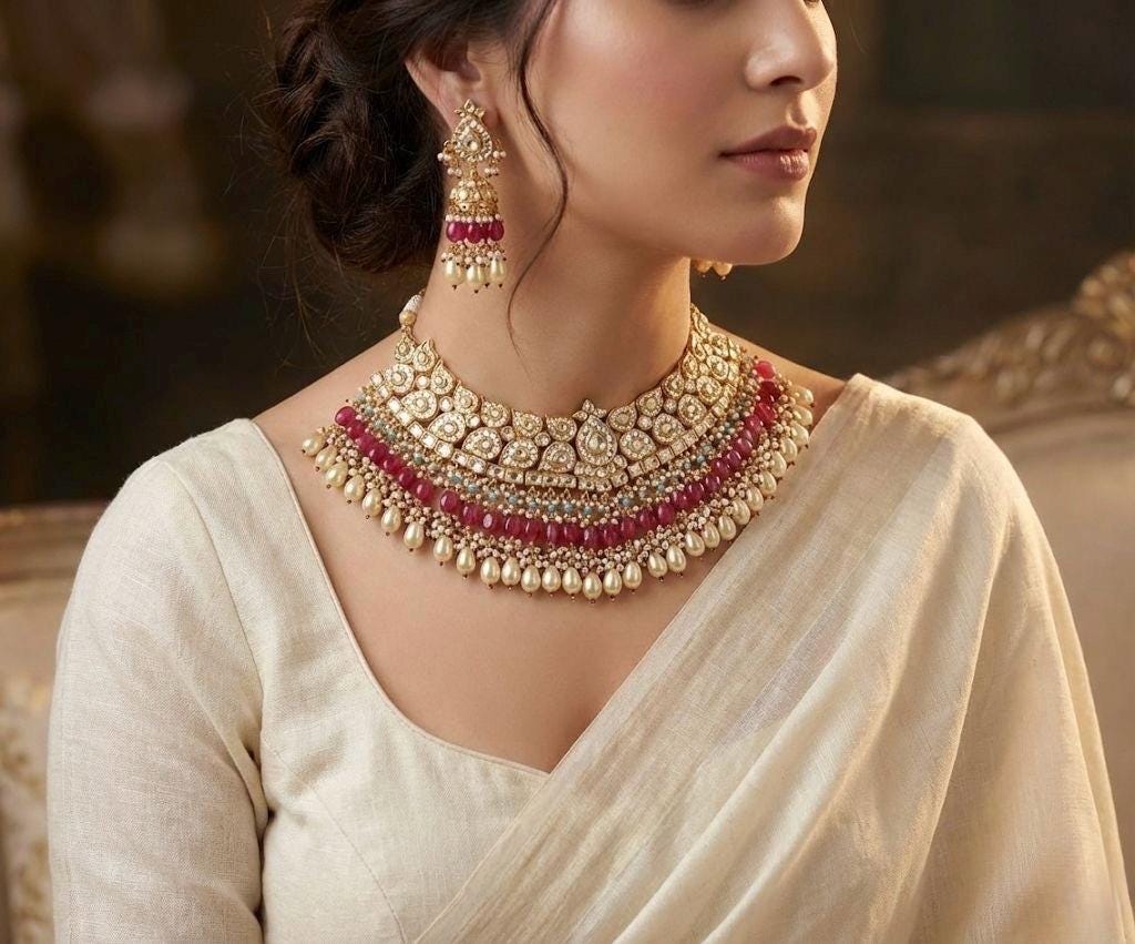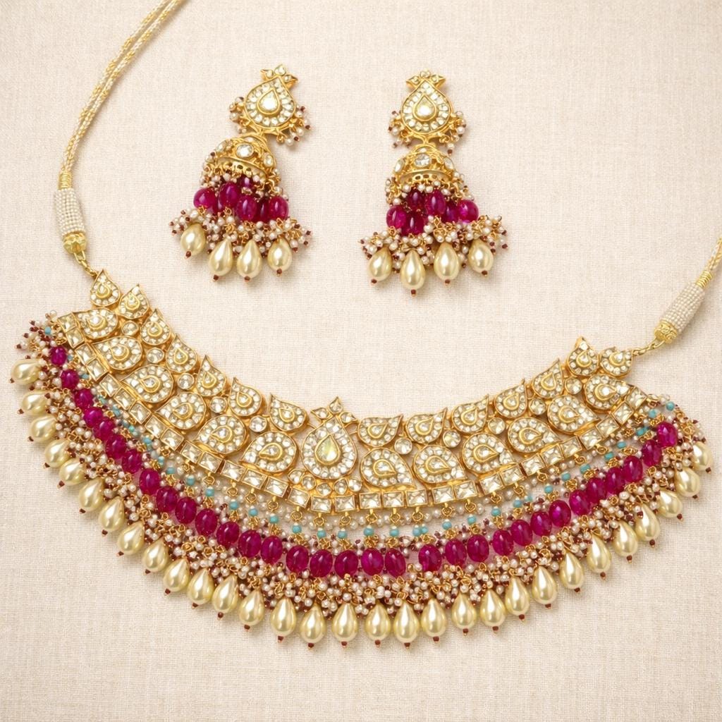 • It’s beautiful Ethnic Indian Wedding Choker with Statement Earrings.