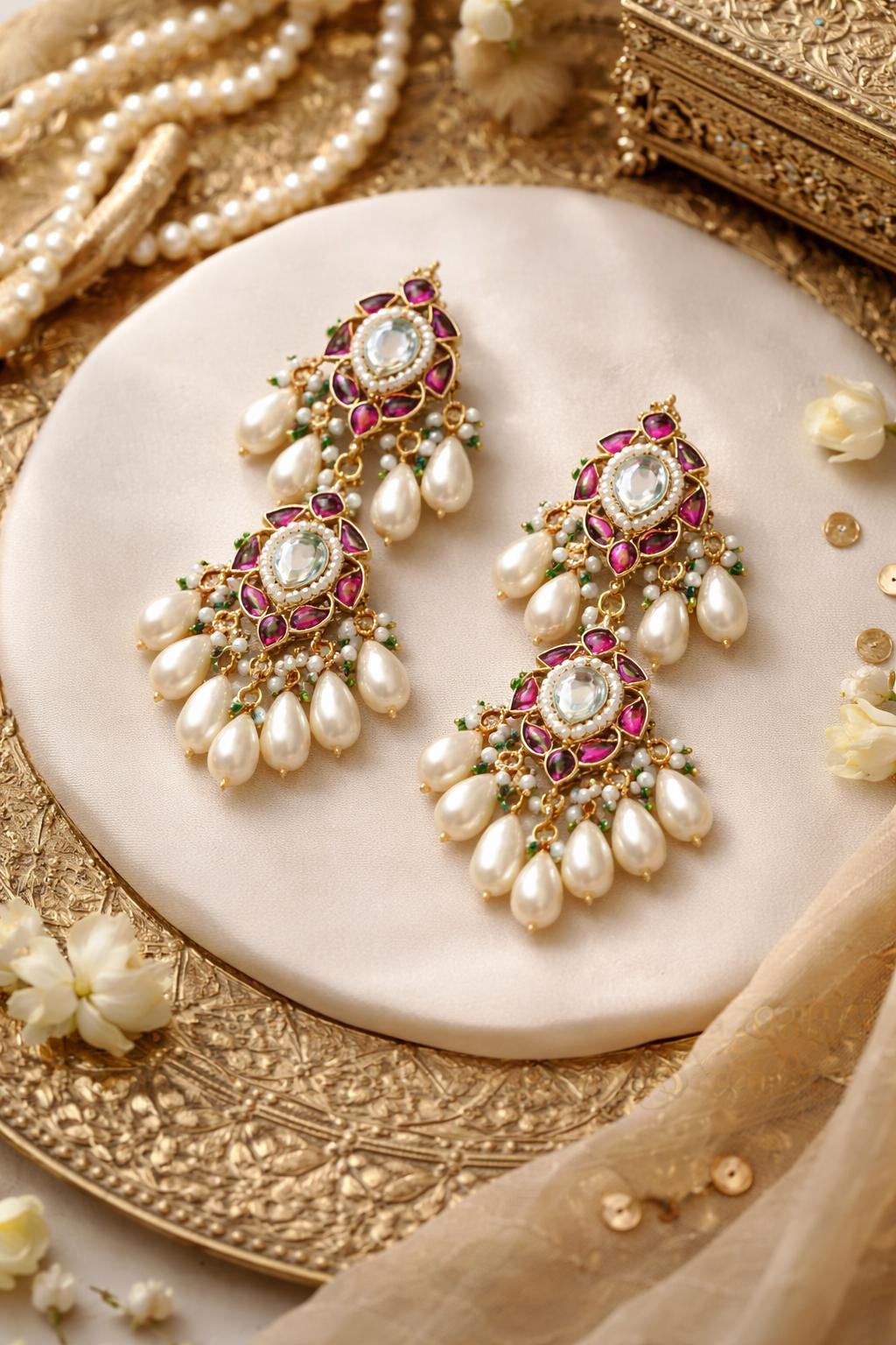• It isHandmade Indian Ethnic Kundan Designer Earrings.