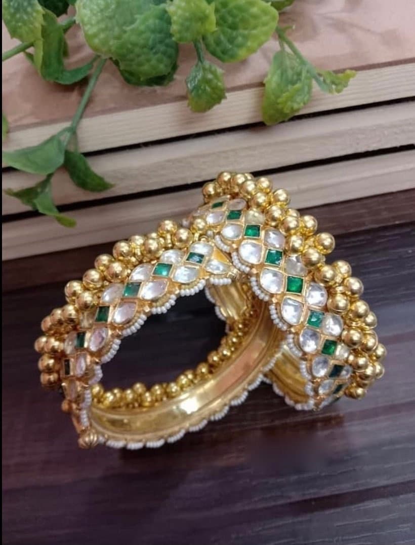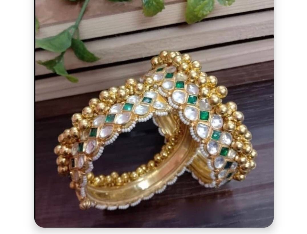 • This is 22k Gold Plated Kundan Bangles.Its perfect for Wedding Occasion as well as Gift and Bridal wear to match with Wedding Outfits.