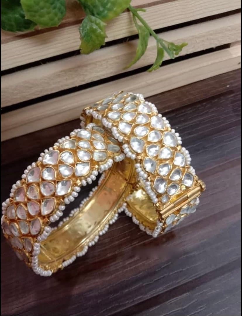• This is Gold Finish Kundan Bangle Pair.Its Perfect for Wedding Occasion and is Unique and Ethnic Traditional Bangle to gift and also Bridal wear to match with Wedding Outfits.