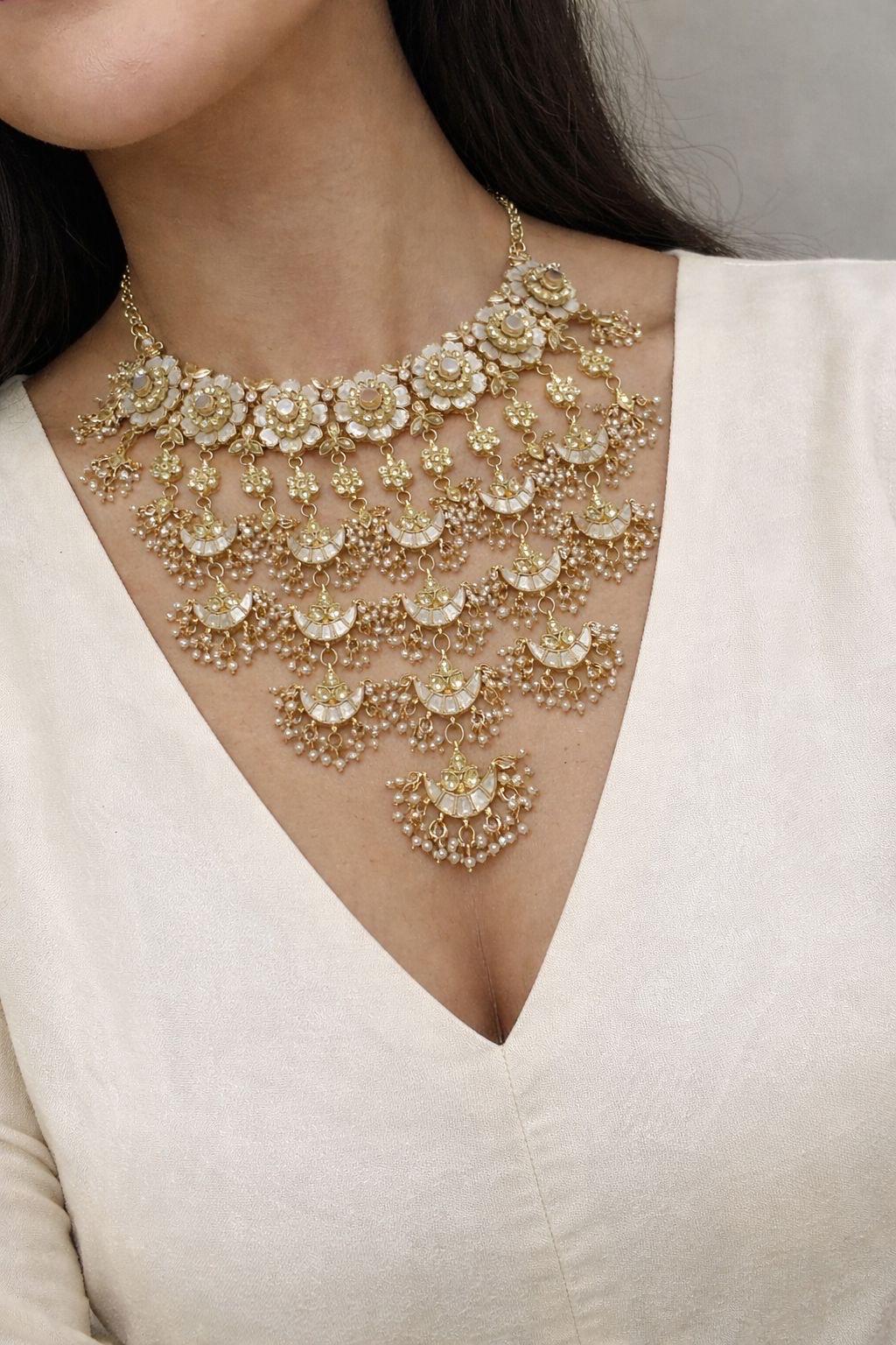 Handmade Kundan Choker Necklace Set, exquisitely gold plated and inspired by Indian bridal traditions, showcasing intricate craftsmanship and timeless elegance perfect for weddings and grand celebrations.