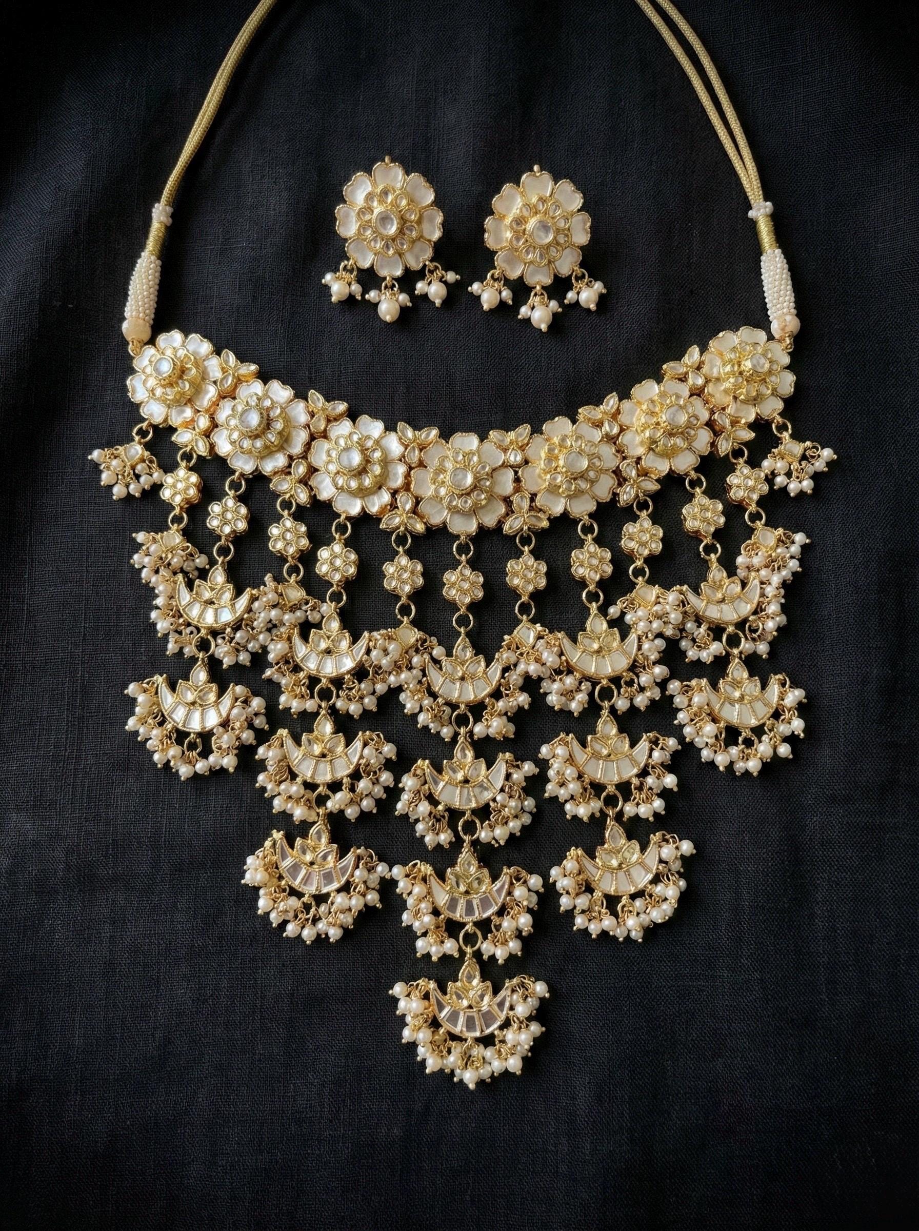 • Handmade Gold Plated Indian Kundan Jewelry Necklace and Earrings Set.