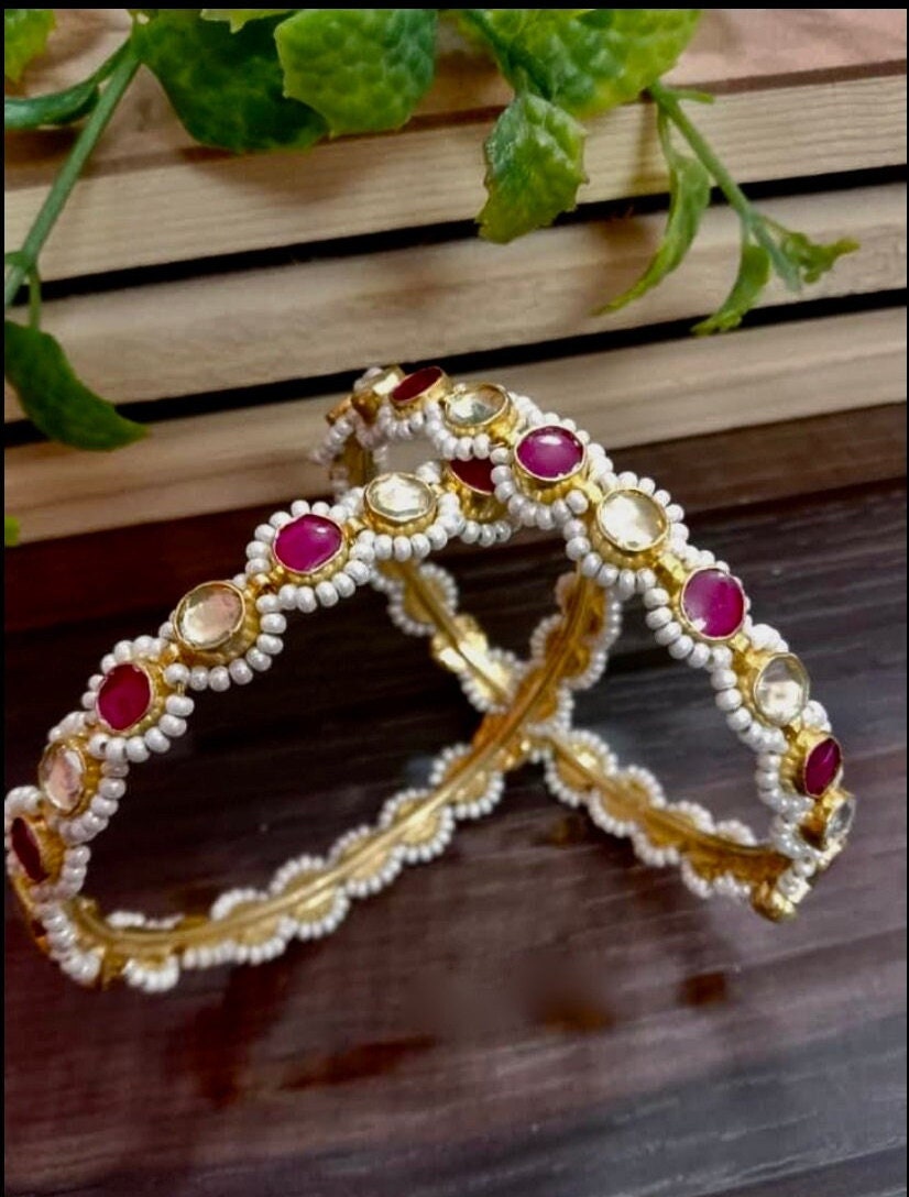 • This is Gold Finish Kundan Bangles pair.Its Perfect for Wedding Occasion as well as Unique and Ethnic Traditional Bangle to gift and Also Bridal wear to match with Wedding Outfits.