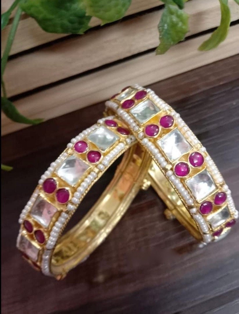 • This is Gold Finish Kundan Bangles Pair.Its Perfect for Wedding Occasion as well as Unique and Ethnic Traditional Bangle to gift and Also Bridal wear to match with Wedding Outfits.