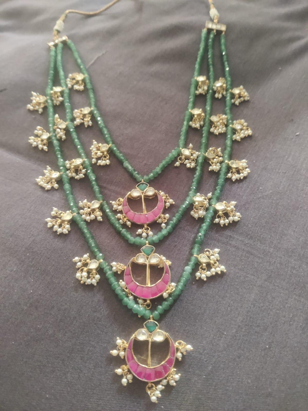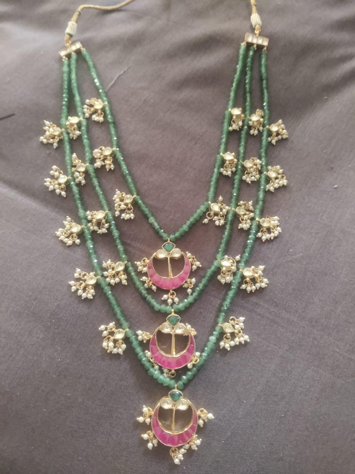 💫Brand New Handmade Indian Multi Layered Emerald Green Kundan Neckless Set!💫