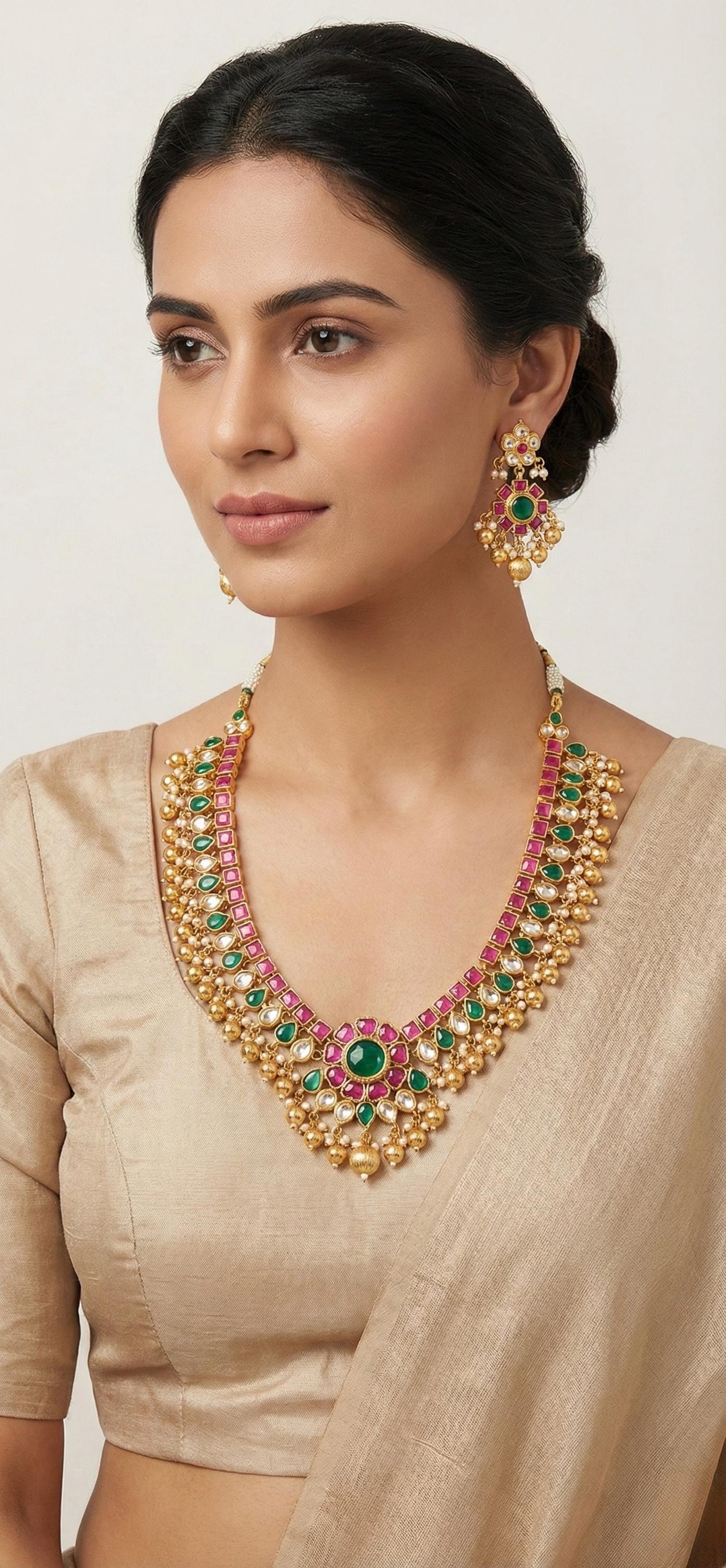 Handcrafted with Love: Each piece is lovingly handmade for a unique touch. Made from a mix of high-quality silver, copper, and dazzling Kundan stones. Plated with shimmering 22K gold.