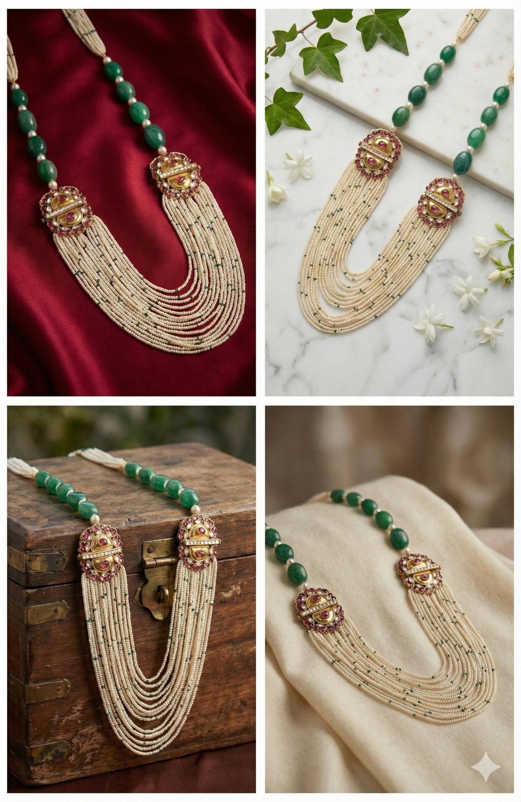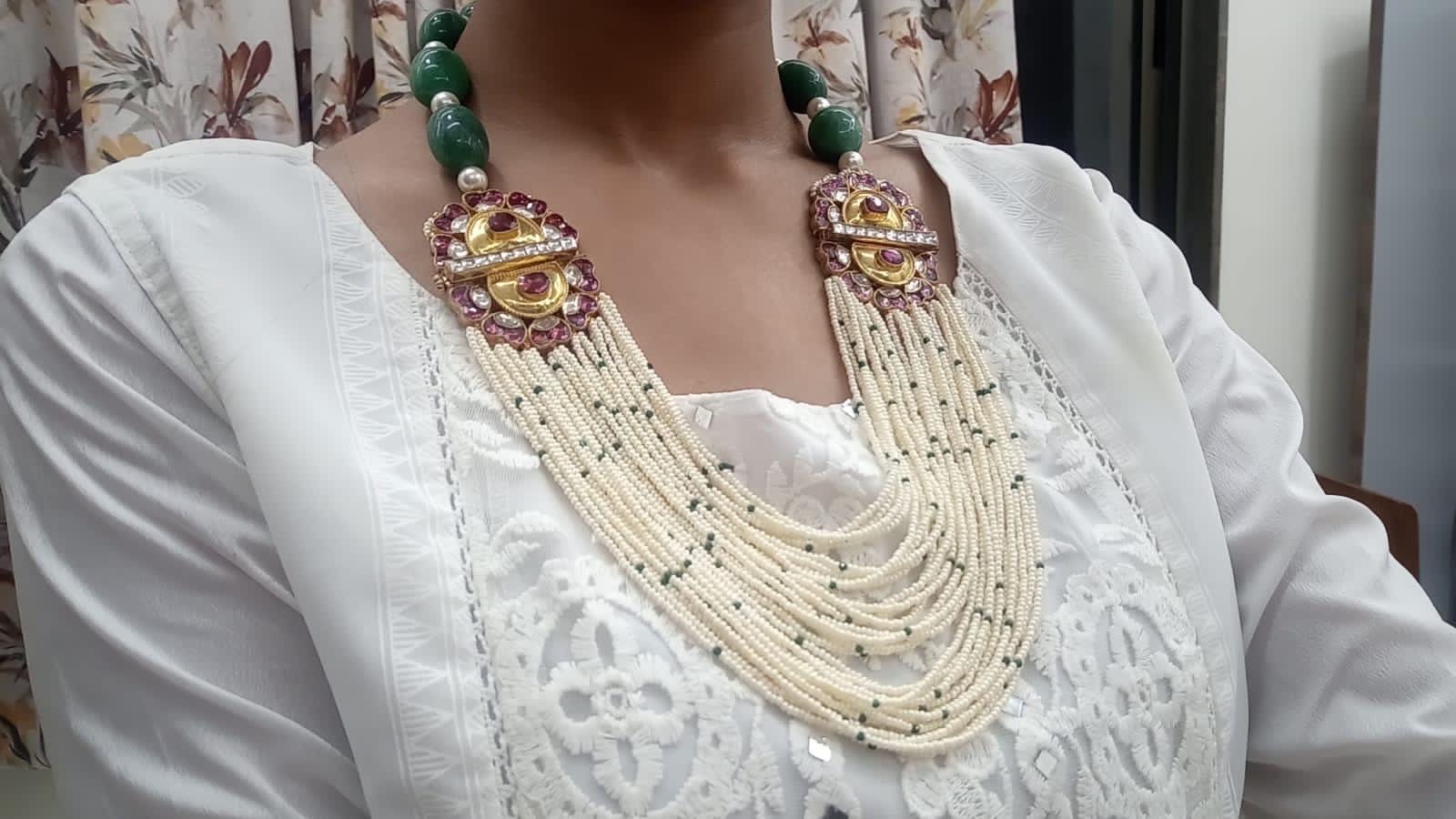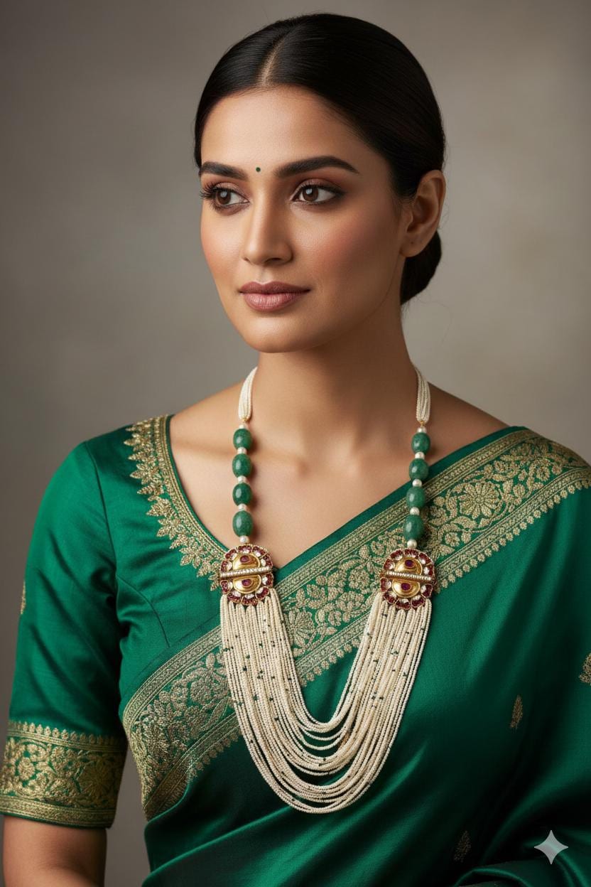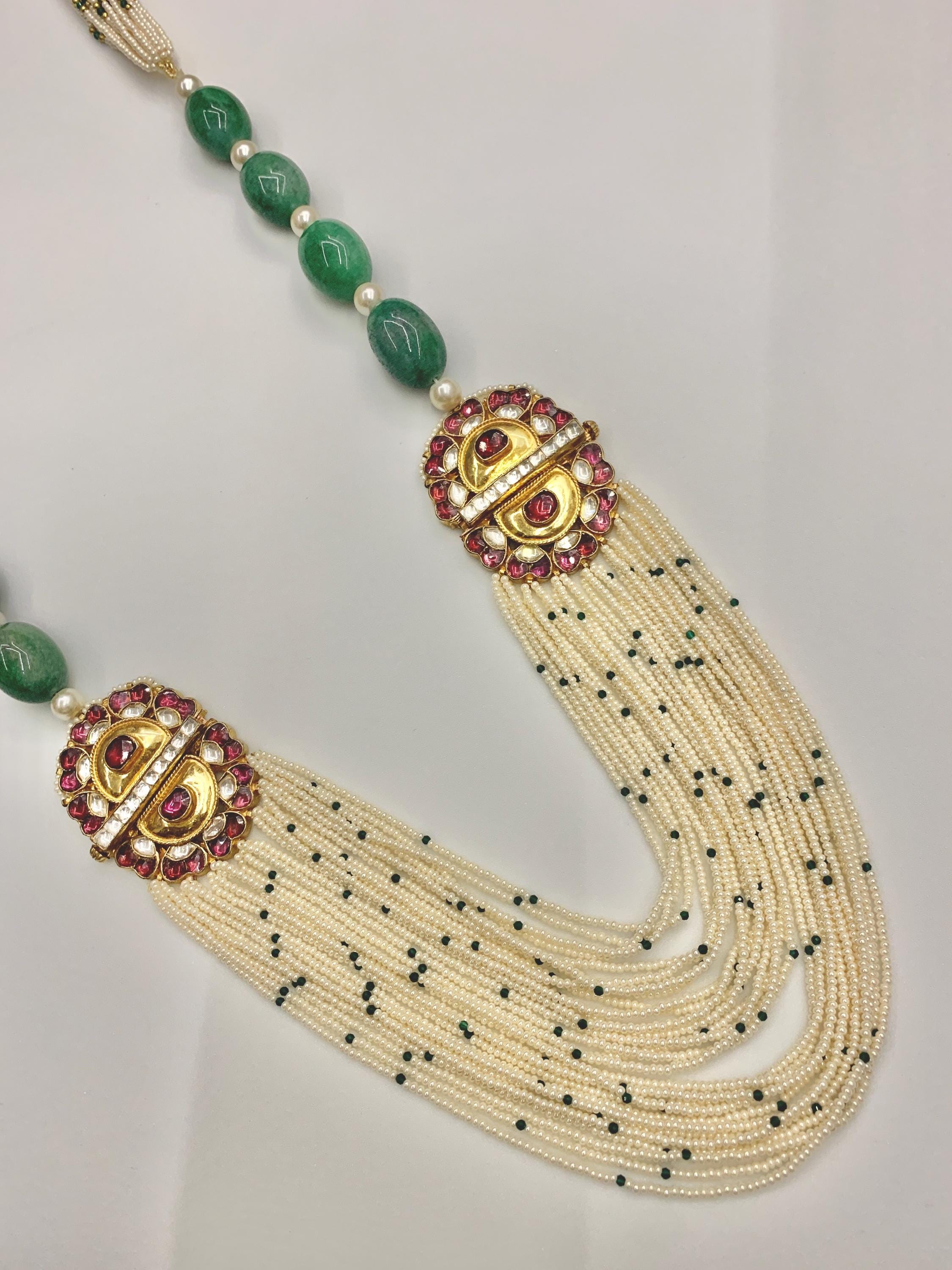 Make Your Traditional look Special with Kundan Green Multi layered Mala Necklace.