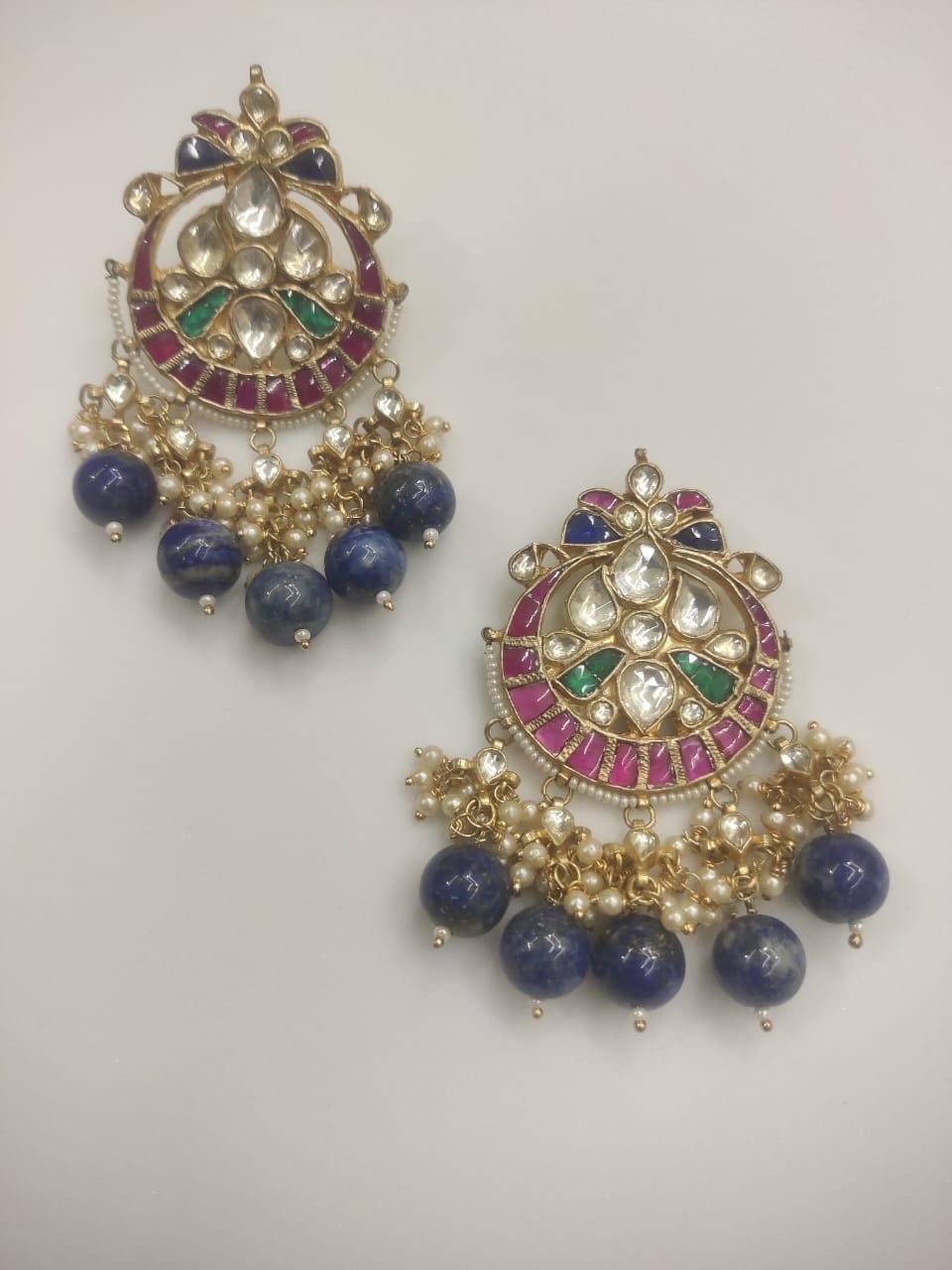 • Its made from Silver and Copper with Whit,Blue,Pink and Green with Blue Lapis Hangings with pearls.
