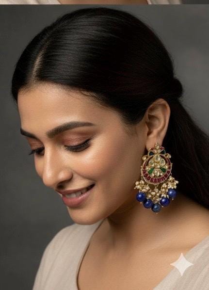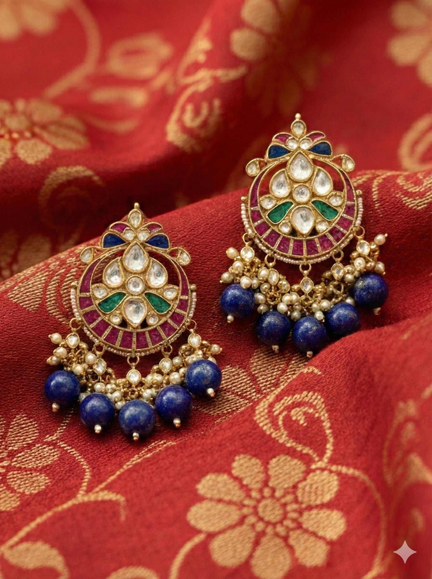 • It is Handmade Indian Ethnic Kundan Earrings with beautiful handwork with kundan settings.