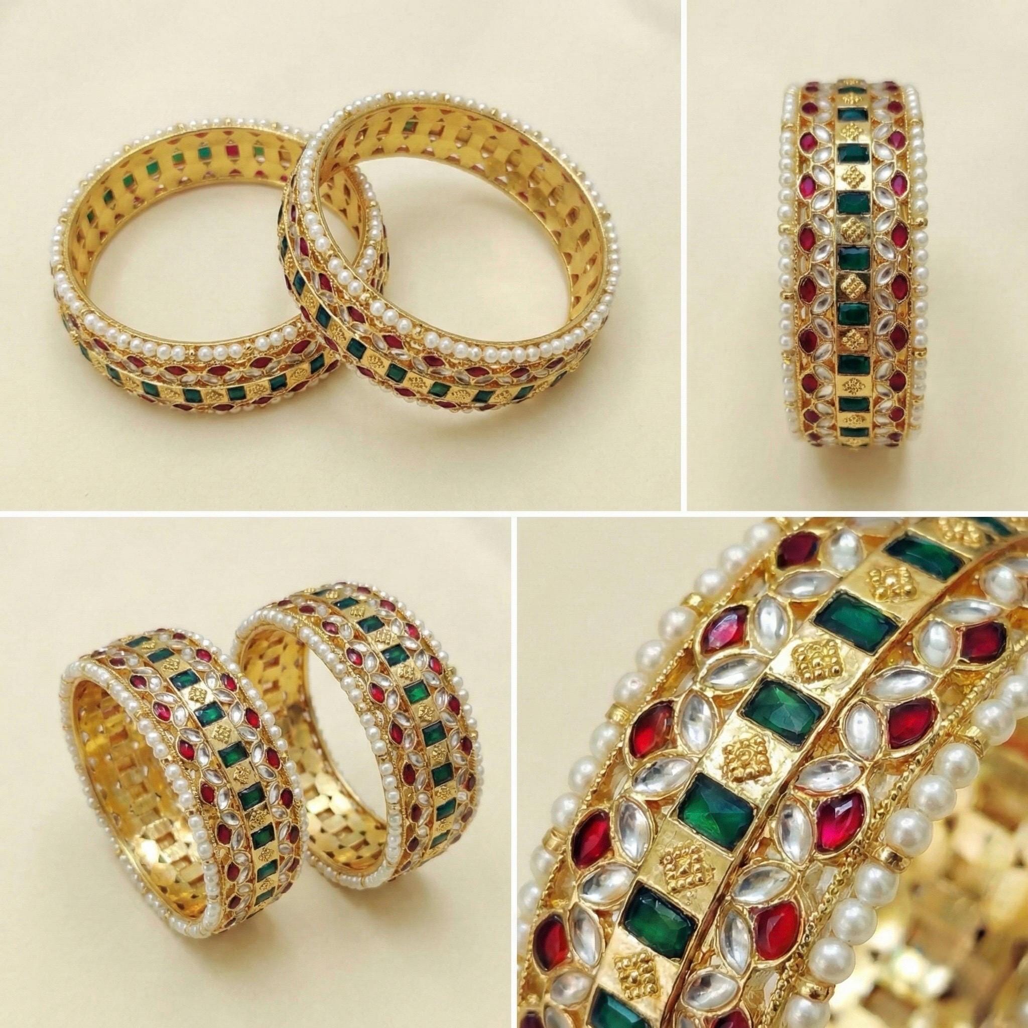 These Kundan Bangles Pair, Gold Plated Wedding Bracelets, Indian Bridal Jewelry pieces are designed to embody royal bridal elegance with timeless heritage craftsmanship.
