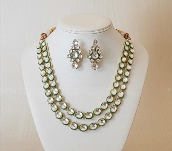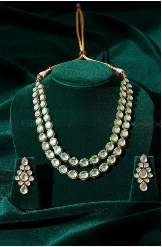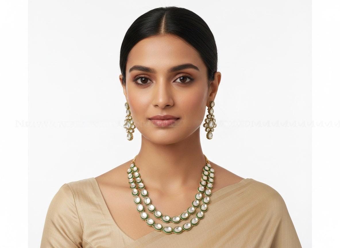 • It’s beautiful Ethnic Indian Wedding Multi Layer Kundan Necklacce with Statement Earrings.