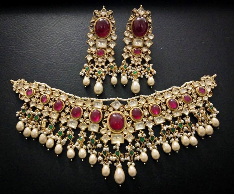 Designed for comfort and lasting beauty, this pink stone Kundan choker necklace set reflects timeless Indian craftsmanship and refined elegance, making it a treasured addition to your bridal jewelry collection or a meaningful gift for special occasions.