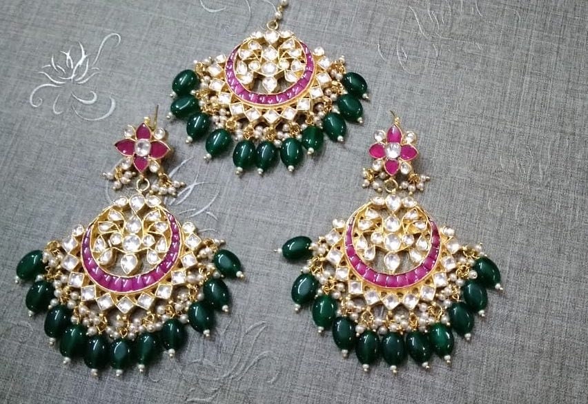 • It’s Handmade Indian Kundan Earrings and Tika Set.