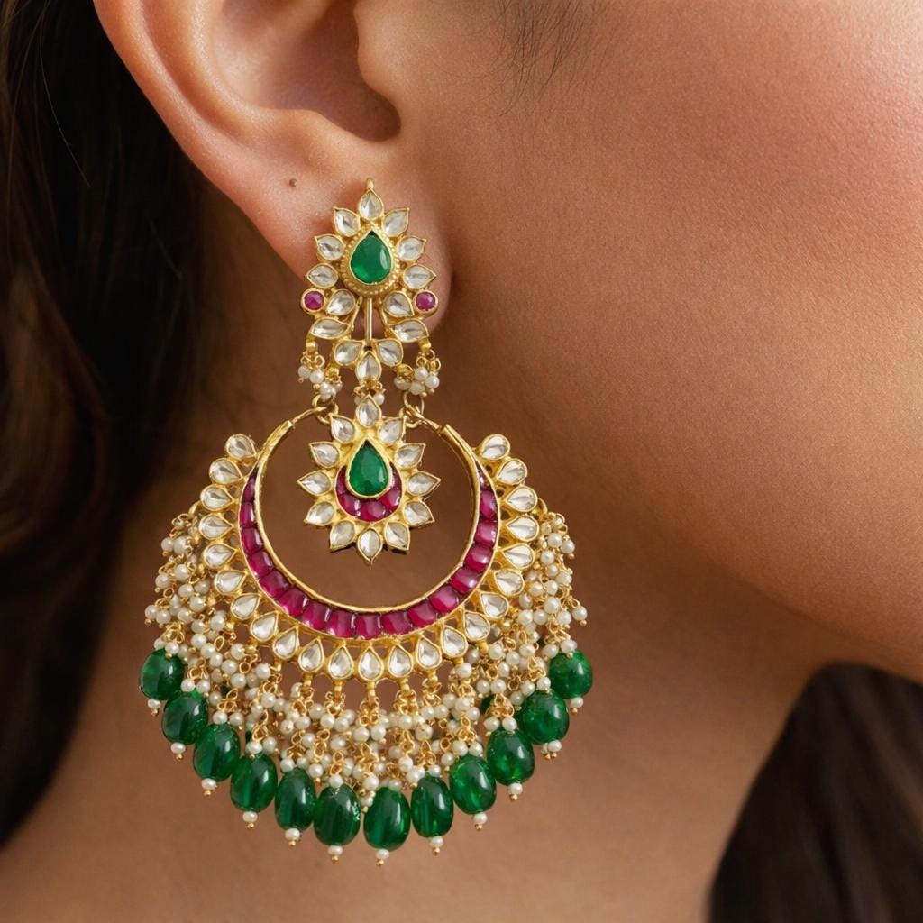 This is Handcrafted Kundan Chandbali Earrings for Indian women as well as Pakistani Brides for all Occasions.