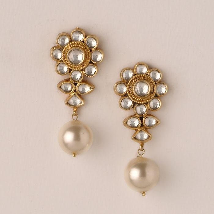• It is made from Silver and Copper with White Kundan Stones Settings and Pearl Drops