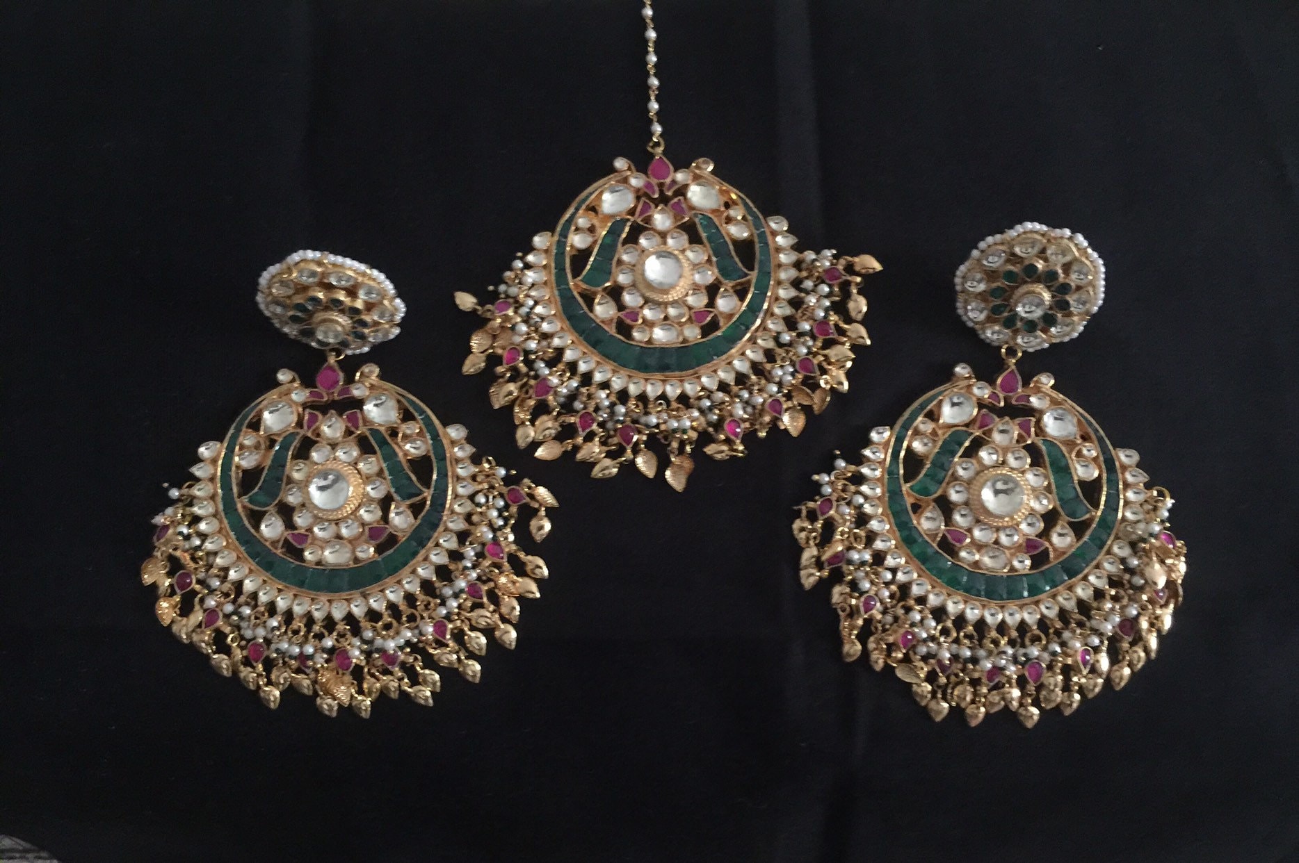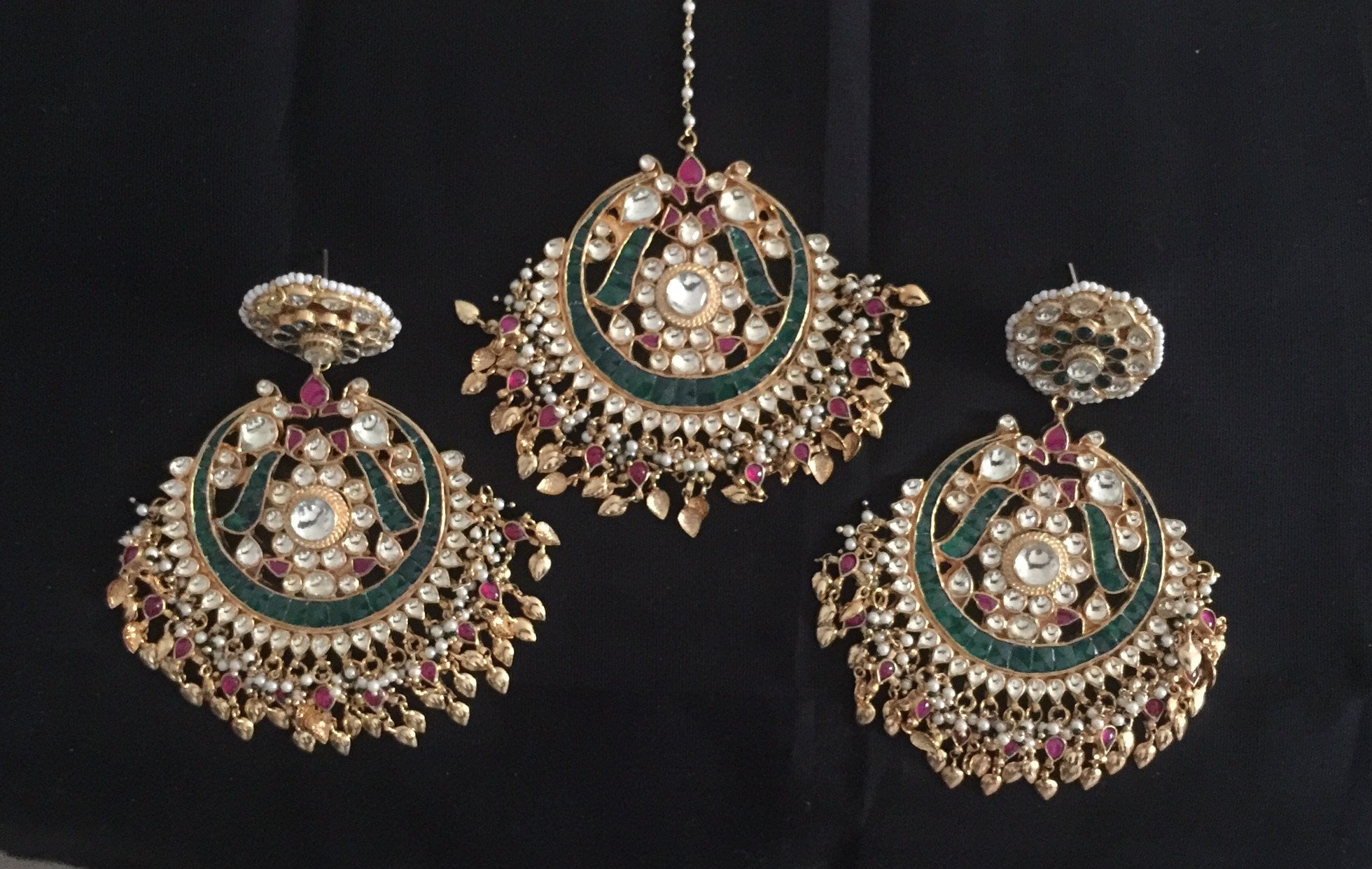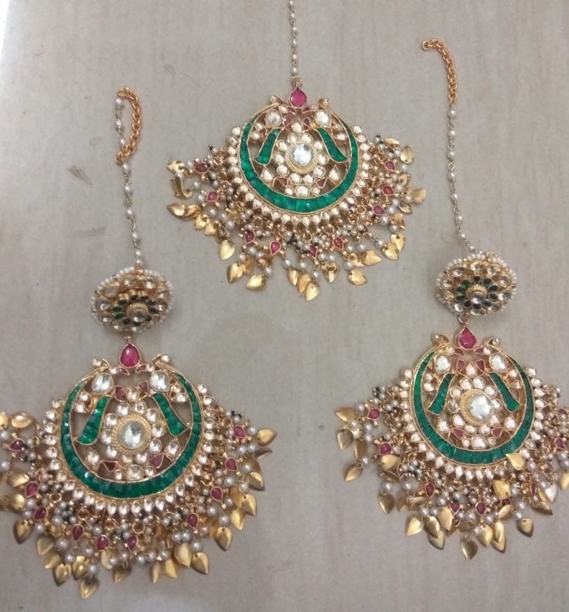 π Discover the Charm: Elevate your bridal look with our stunning Kundan Jewelry Maangtika and Chandbali Earrings Set, tailored for Indian Punjabi brides.