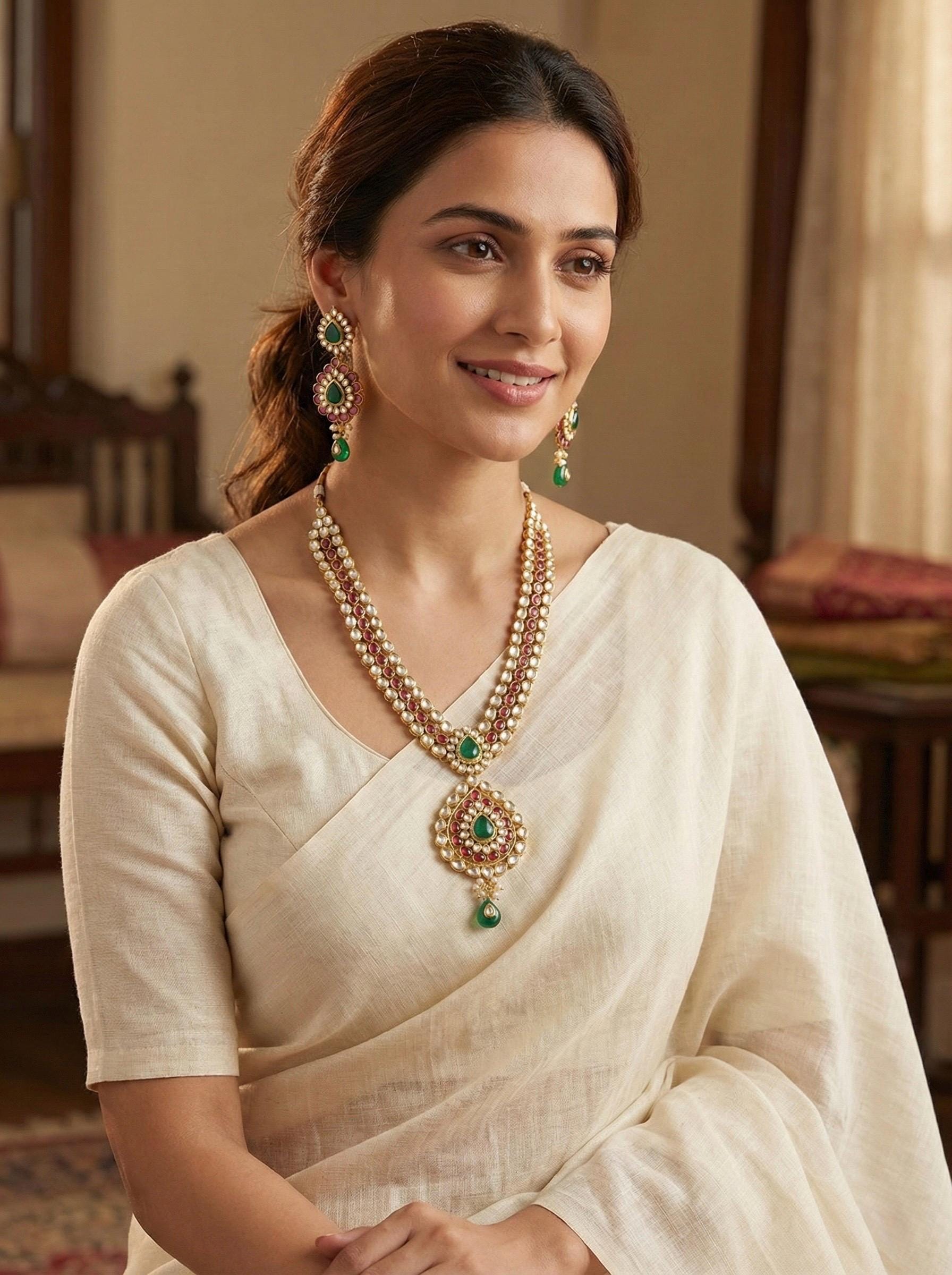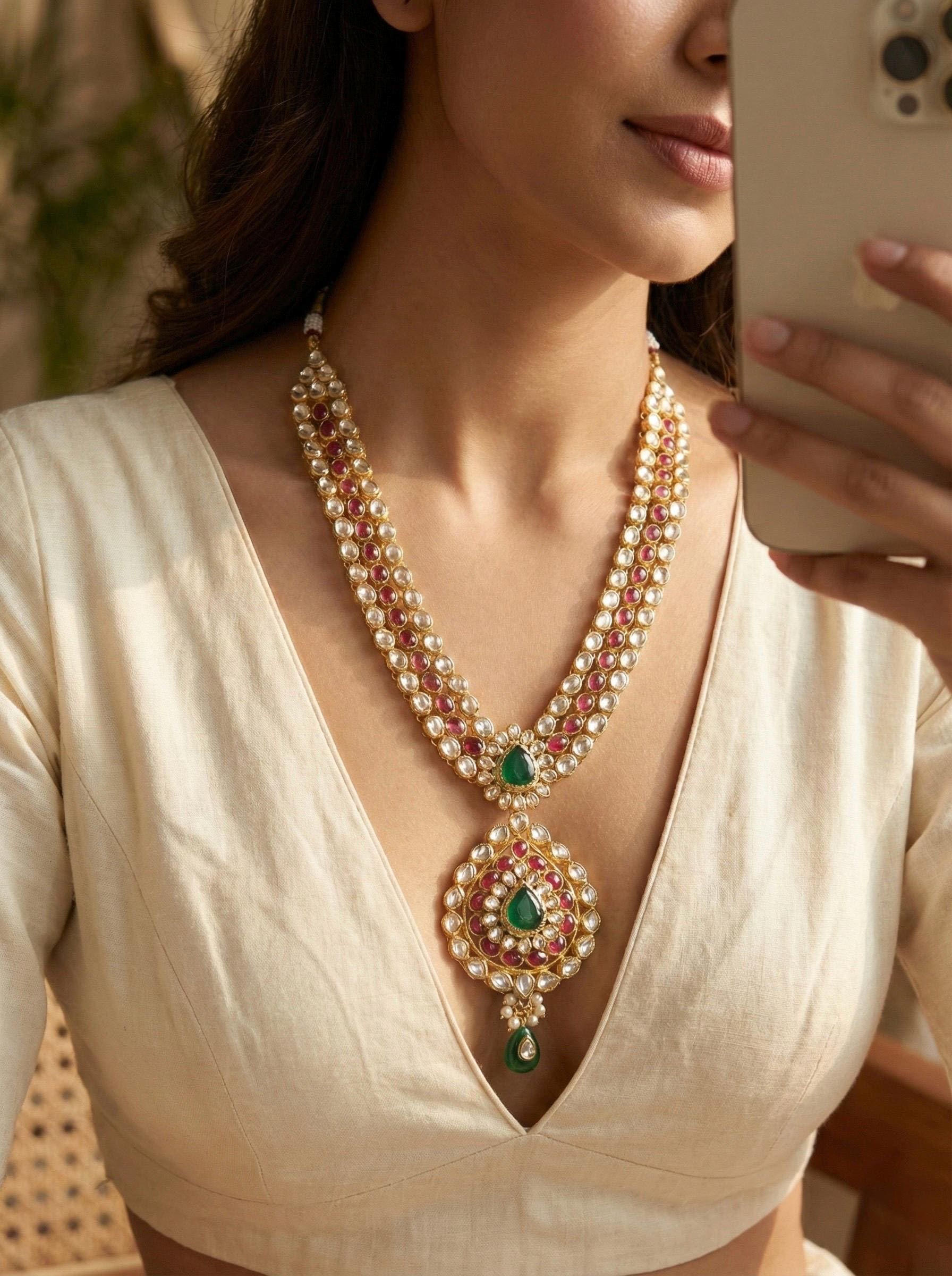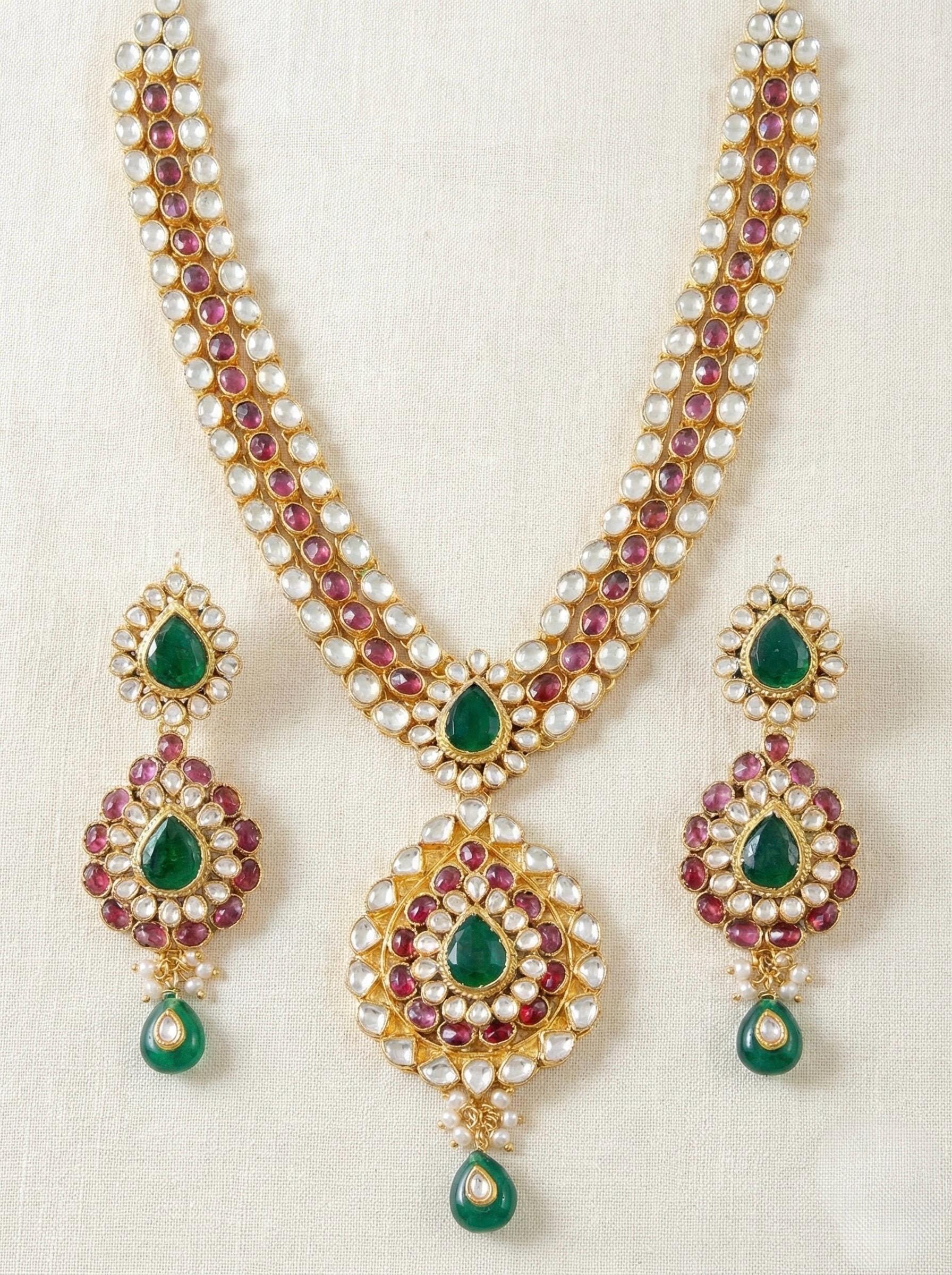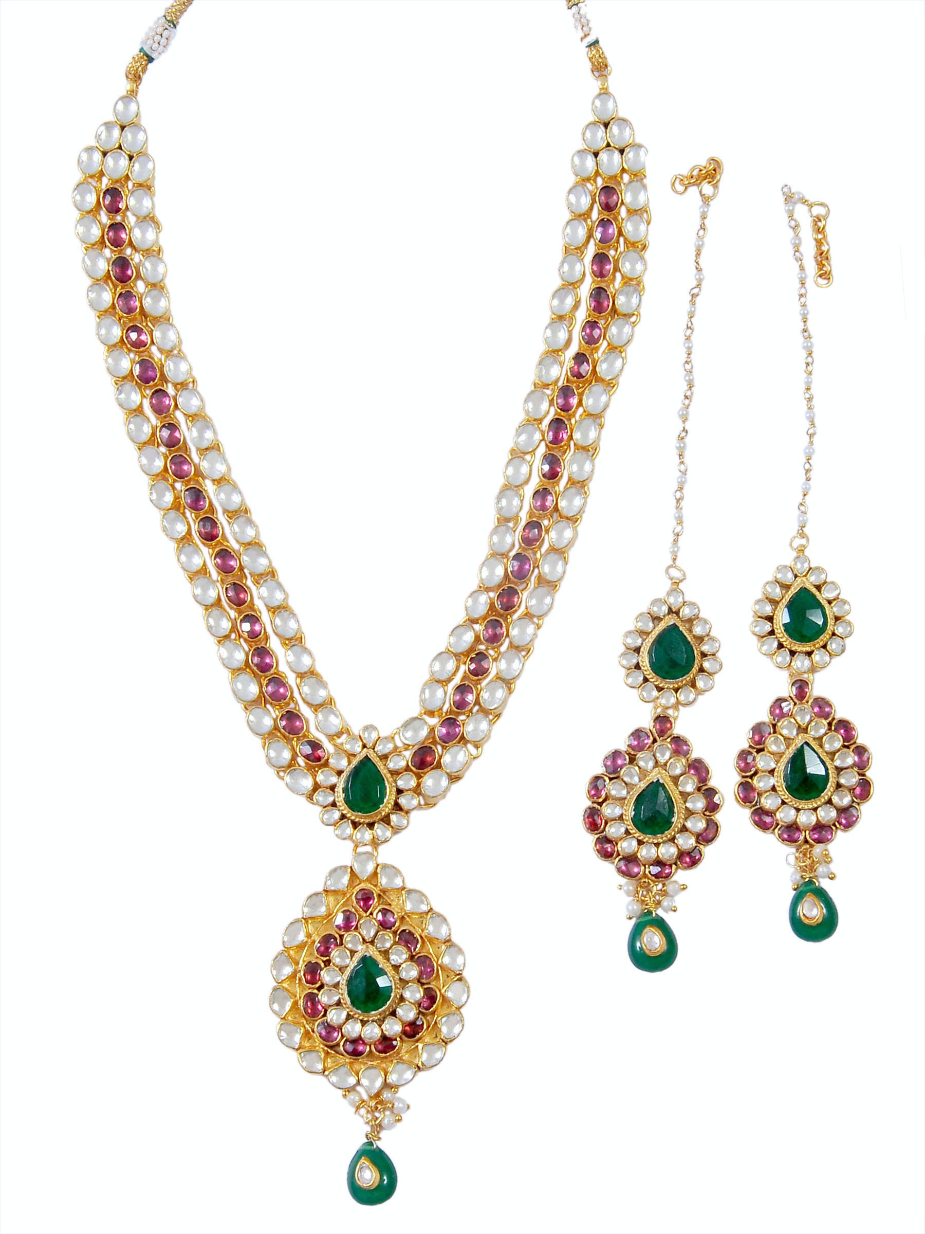 • Necklace is same like shown in picture and with Emerald Green Stones Combination.