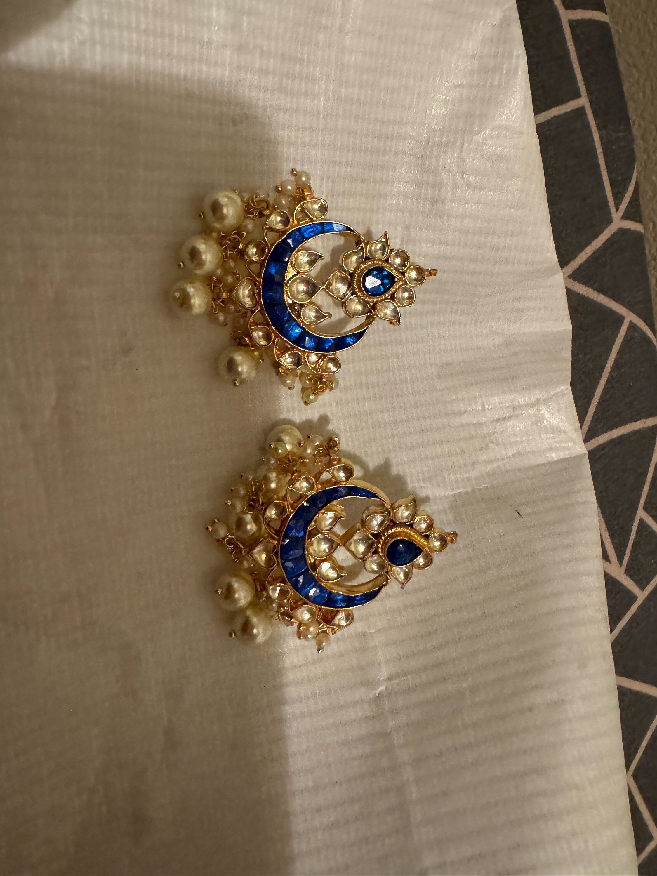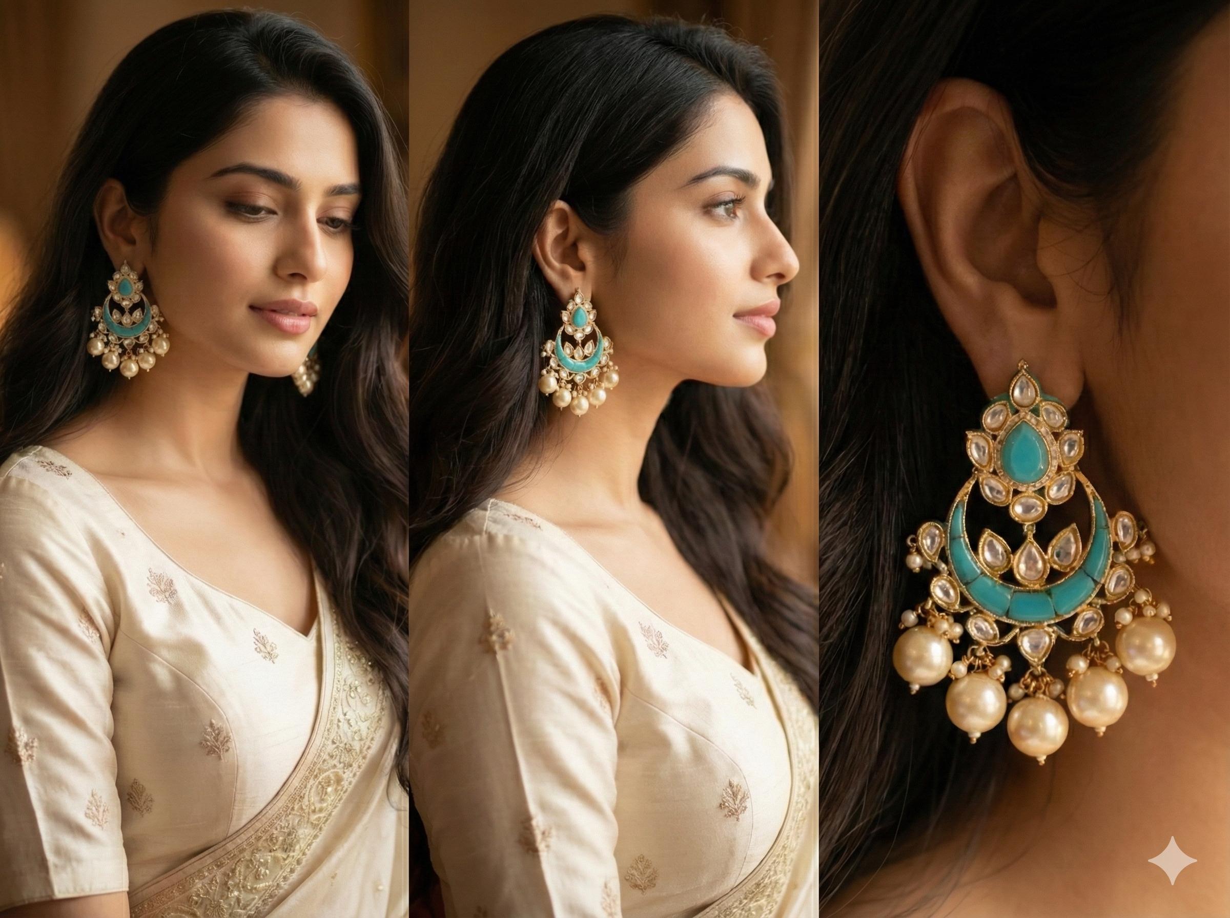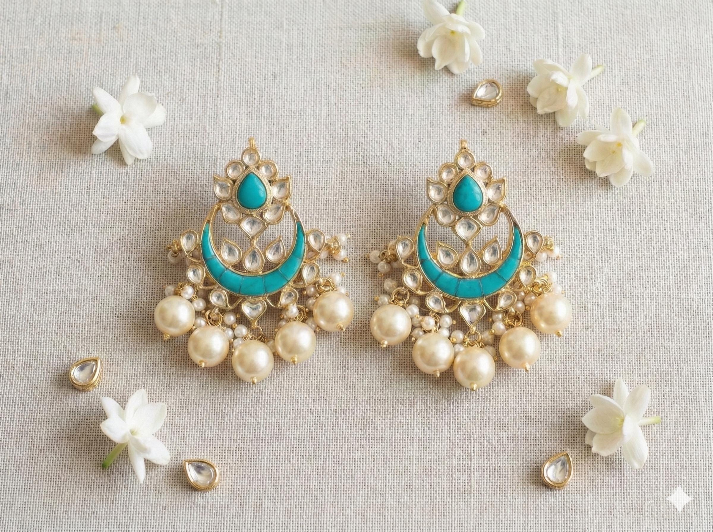 • It is Handmade Indian Ethnic Kundan Chandbali Earrings with Pearl drop.