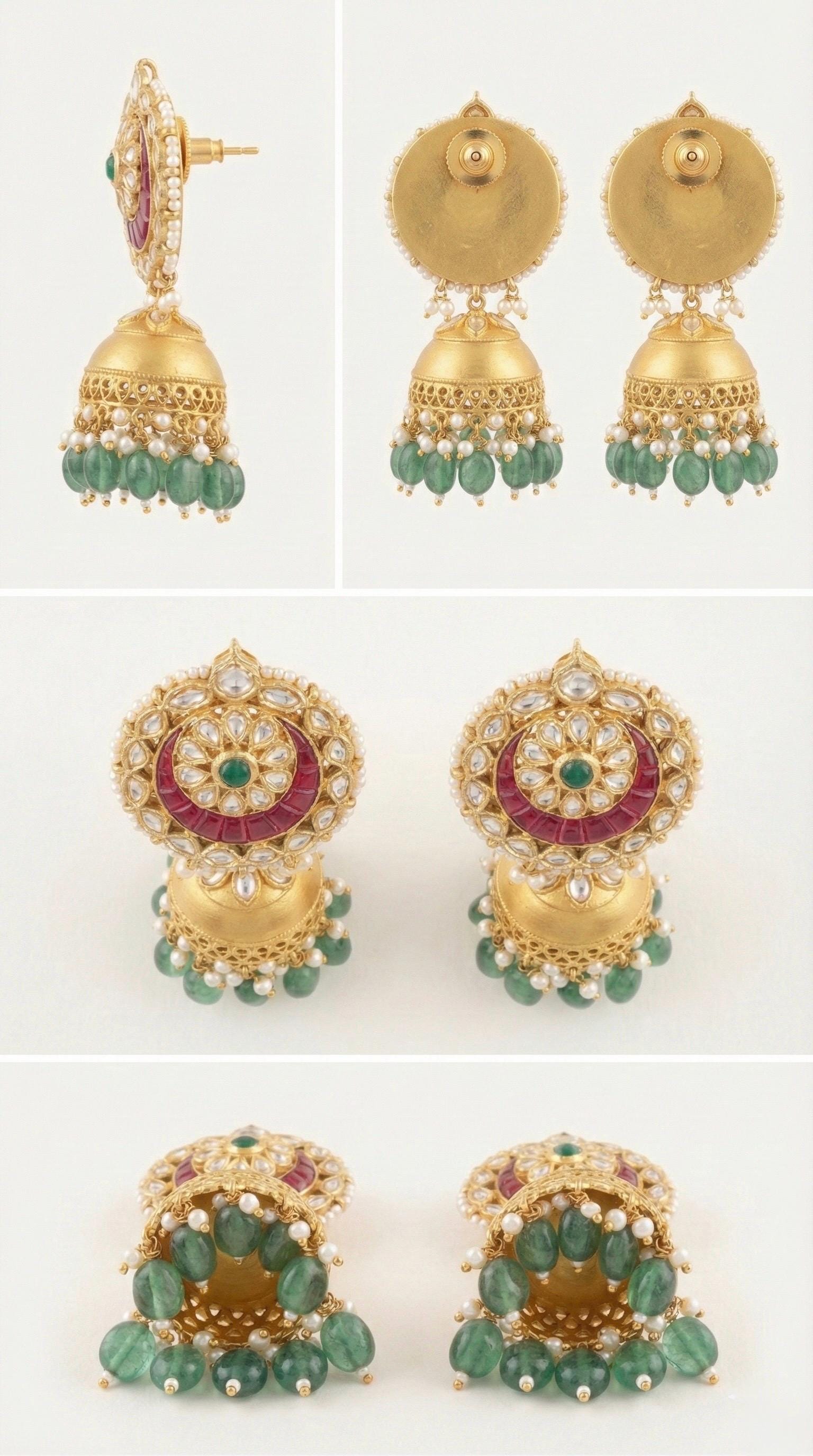 • It’s Handmade Indian Ethnic Kundan Chandbali Earrings with Jumkhi.