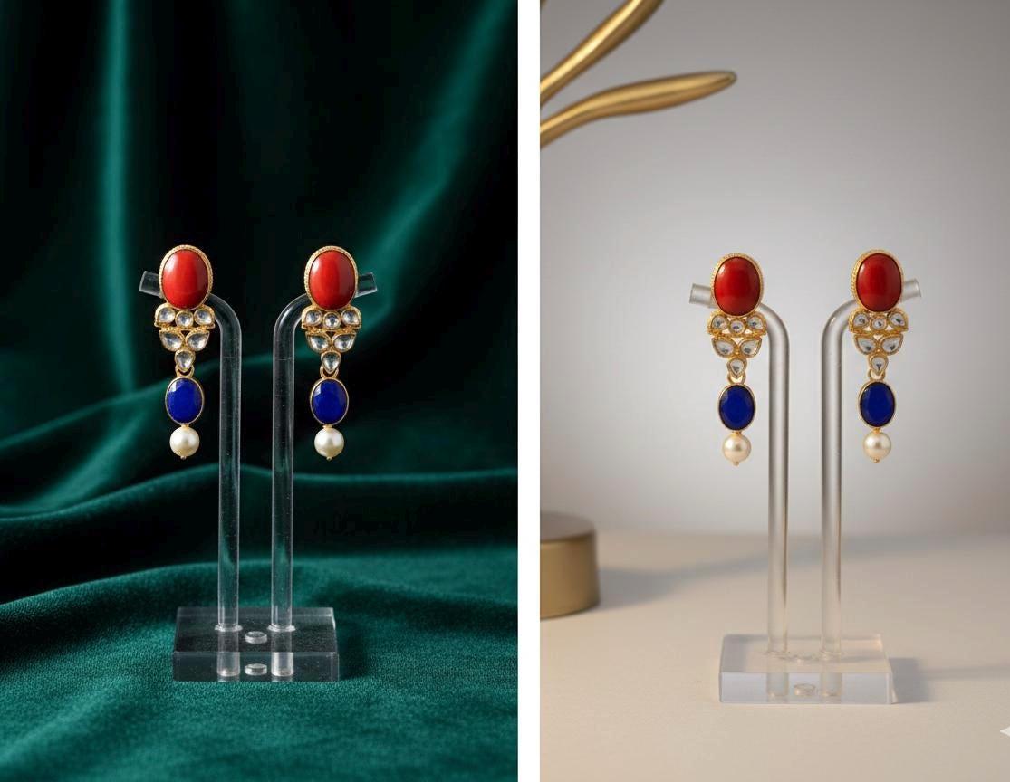 We also provide custom made jewelry according to dress color and wedding requirements including designer pieces replication of custom design. You can contact us for custom requirement by providing your designs for Kundan Jewelry. We will be happy to replicate it according to customer demand.