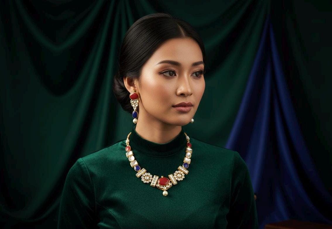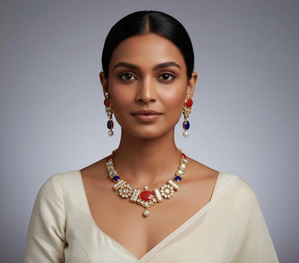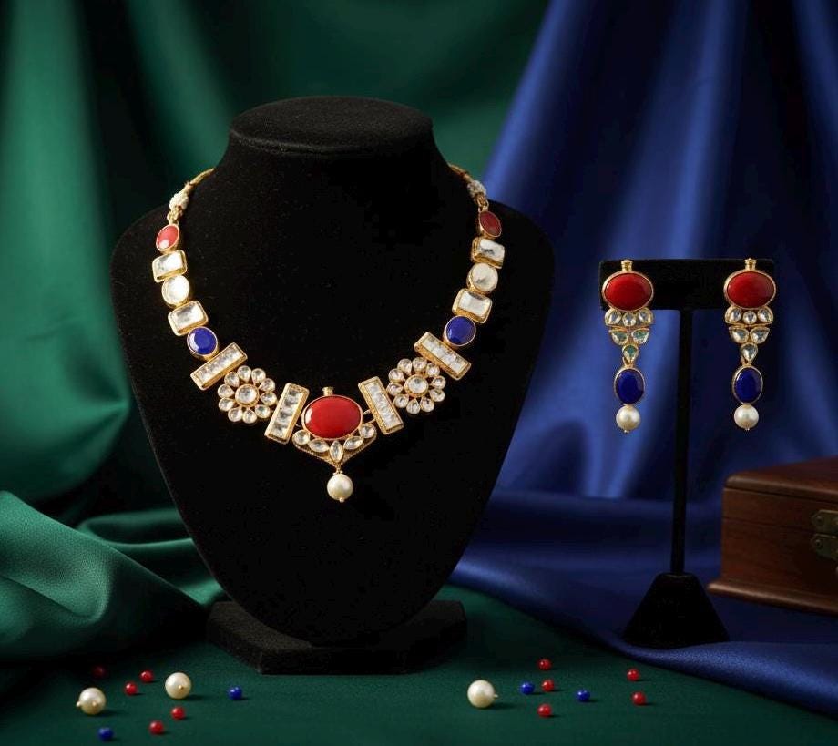 All of our Kundan Jewelry is 100% handmade and 22k Gold Plated with ancient Kundan stone setting method using silver foils. It is one of the most favorable jewelry since last some decades till present time for Indian as well as Asian Ethnic and Traditional Culture.