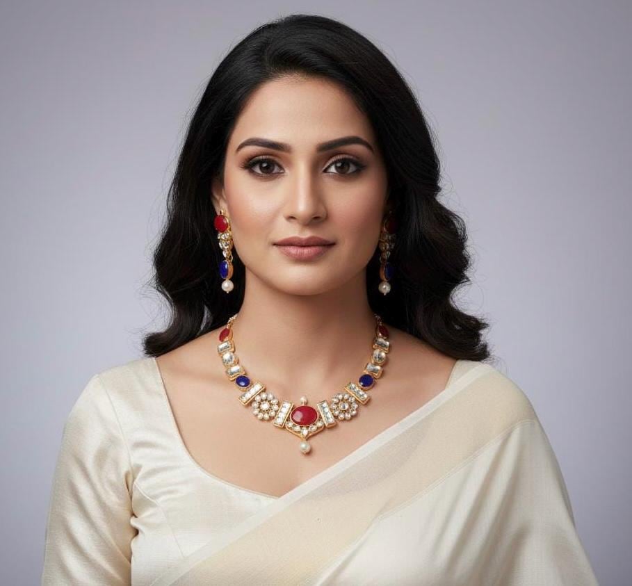 • Its 22 K Gold Plated made from Silver and Copper Mix material and also using hand cut stones like shown in picture and beaded with pearls.
