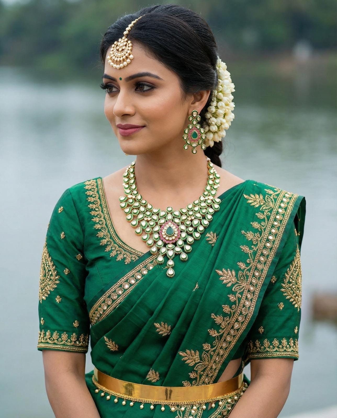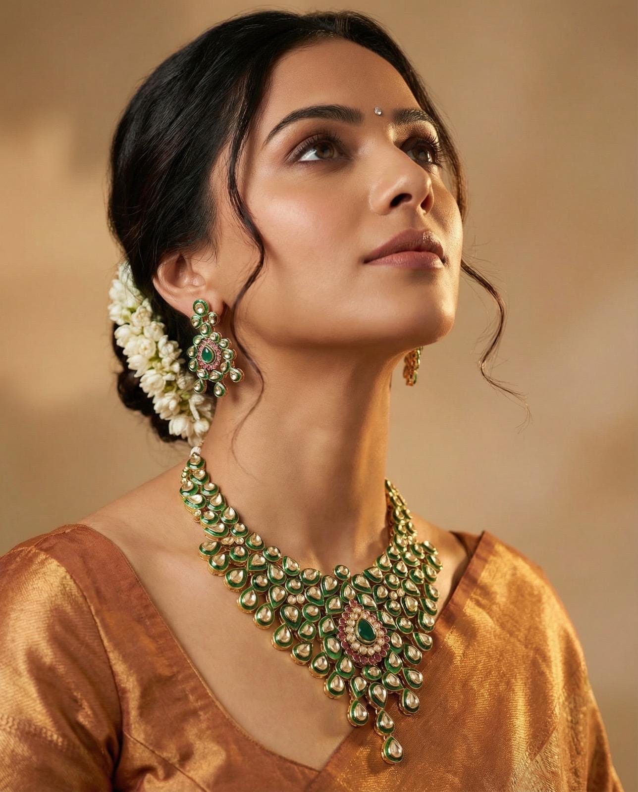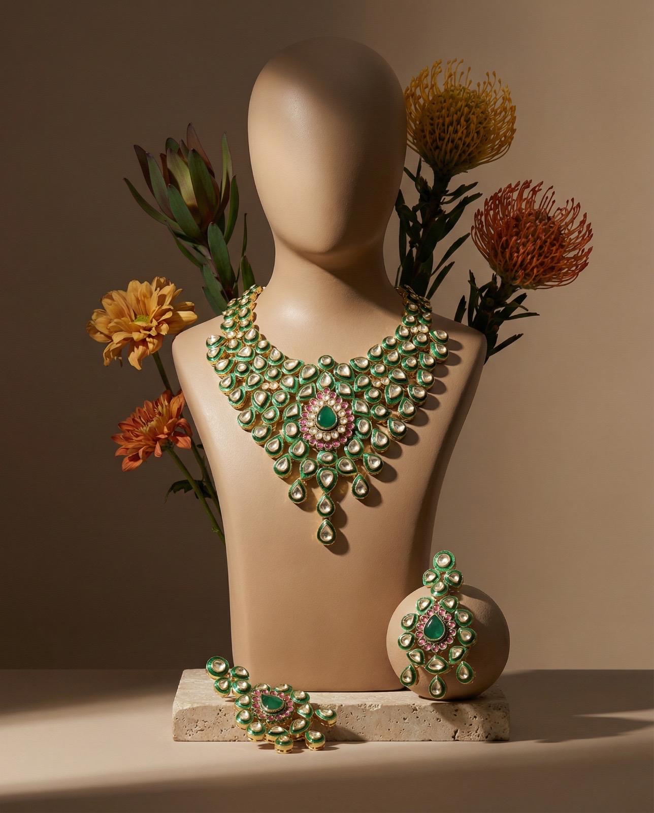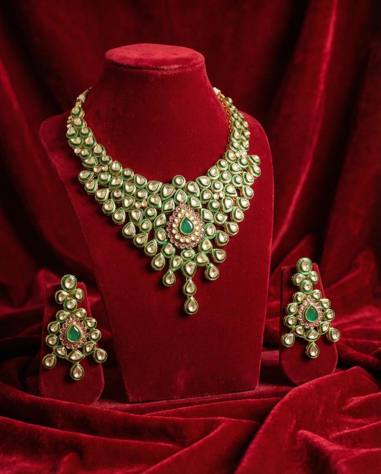 This stunning jewelry set reflects timeless elegance and royal craftsmanship, making it a perfect choice for weddings, festive celebrations, and cultural events.