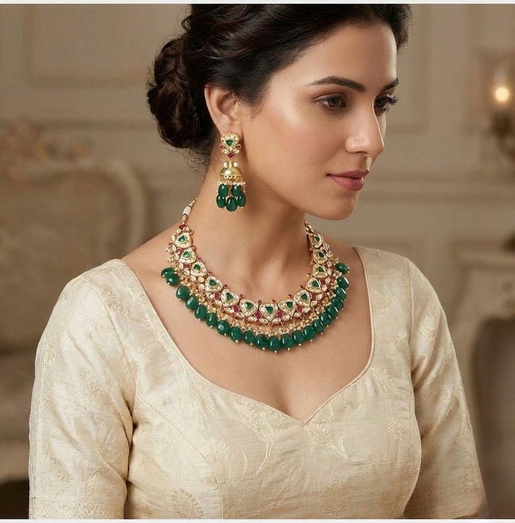 • It’s beautiful Ethnic Indian Wedding Choker with Statement Earrings.