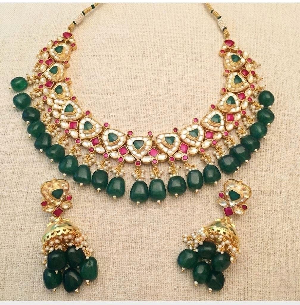 • It’s Handmade Gold Plated Indian Kundan Jewelry Necklace and Earrings Set.