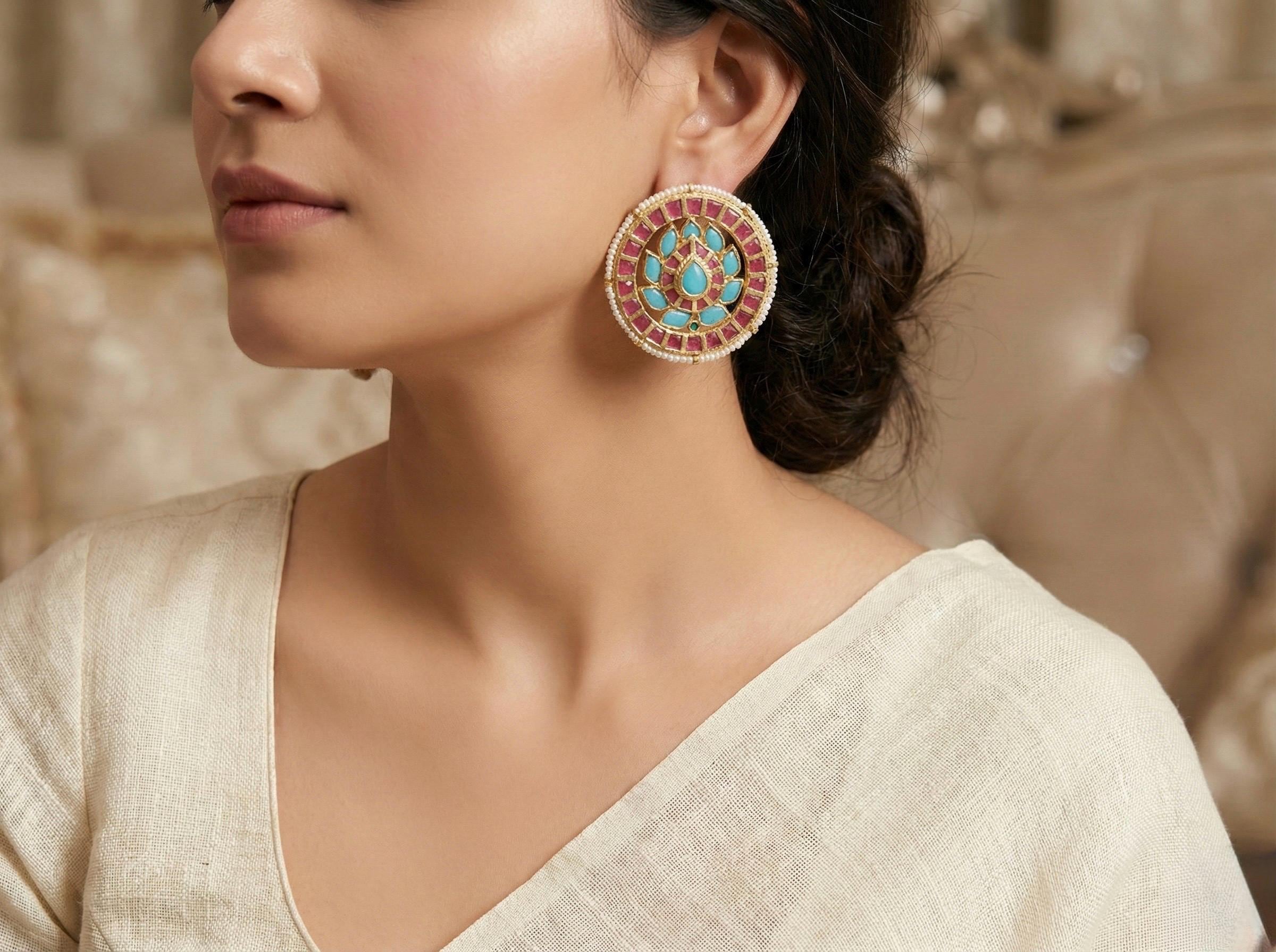 • It is Handmade Indian Ethnic Kundan Earrings with Multi Color Kundan gives different Royal look to woman.