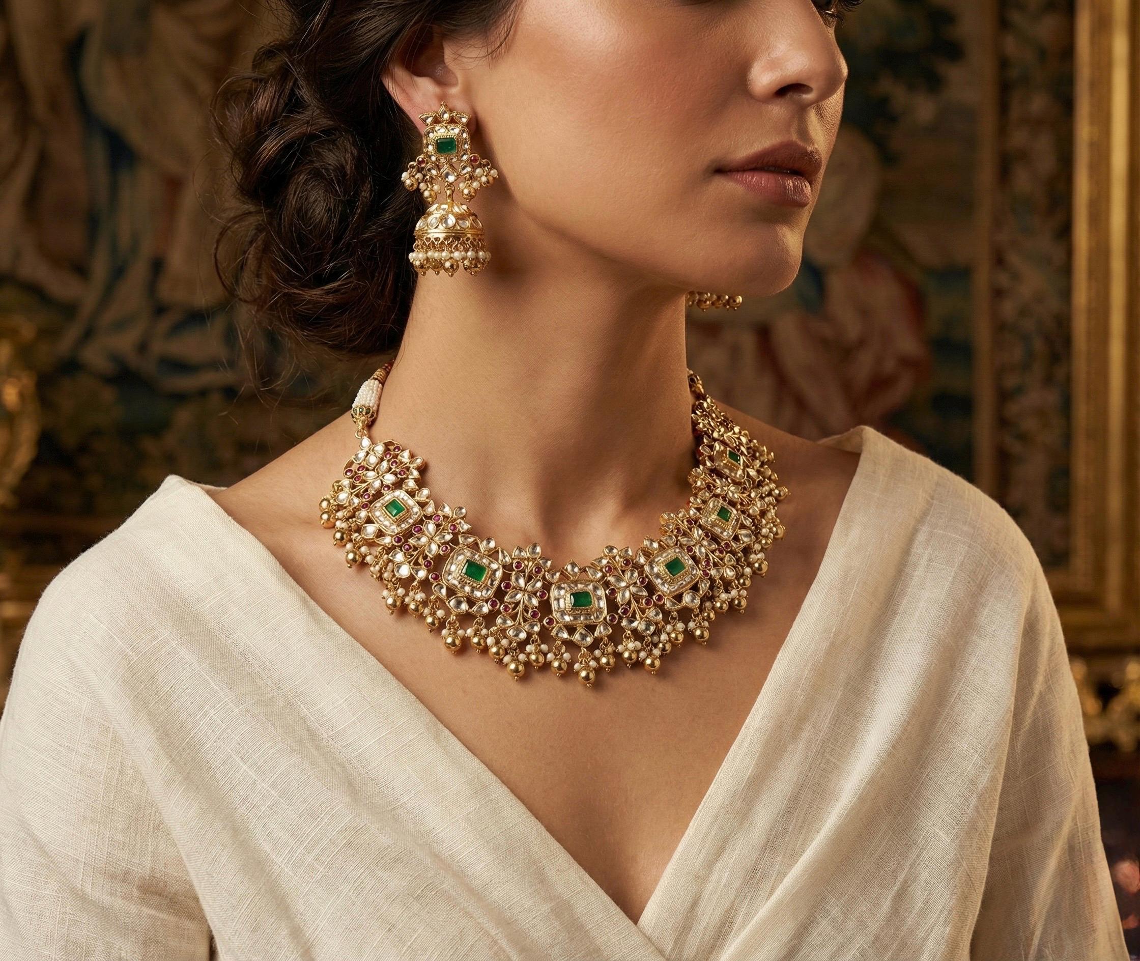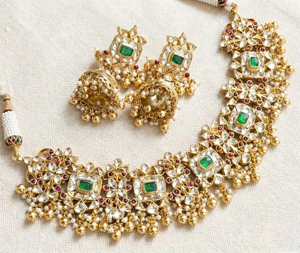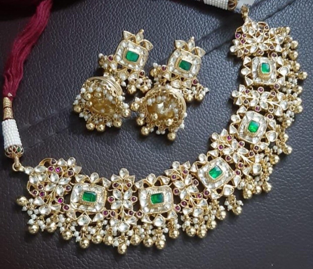 • Its beautiful Multi Color Stones Wedding Choker with Statement Earrings.