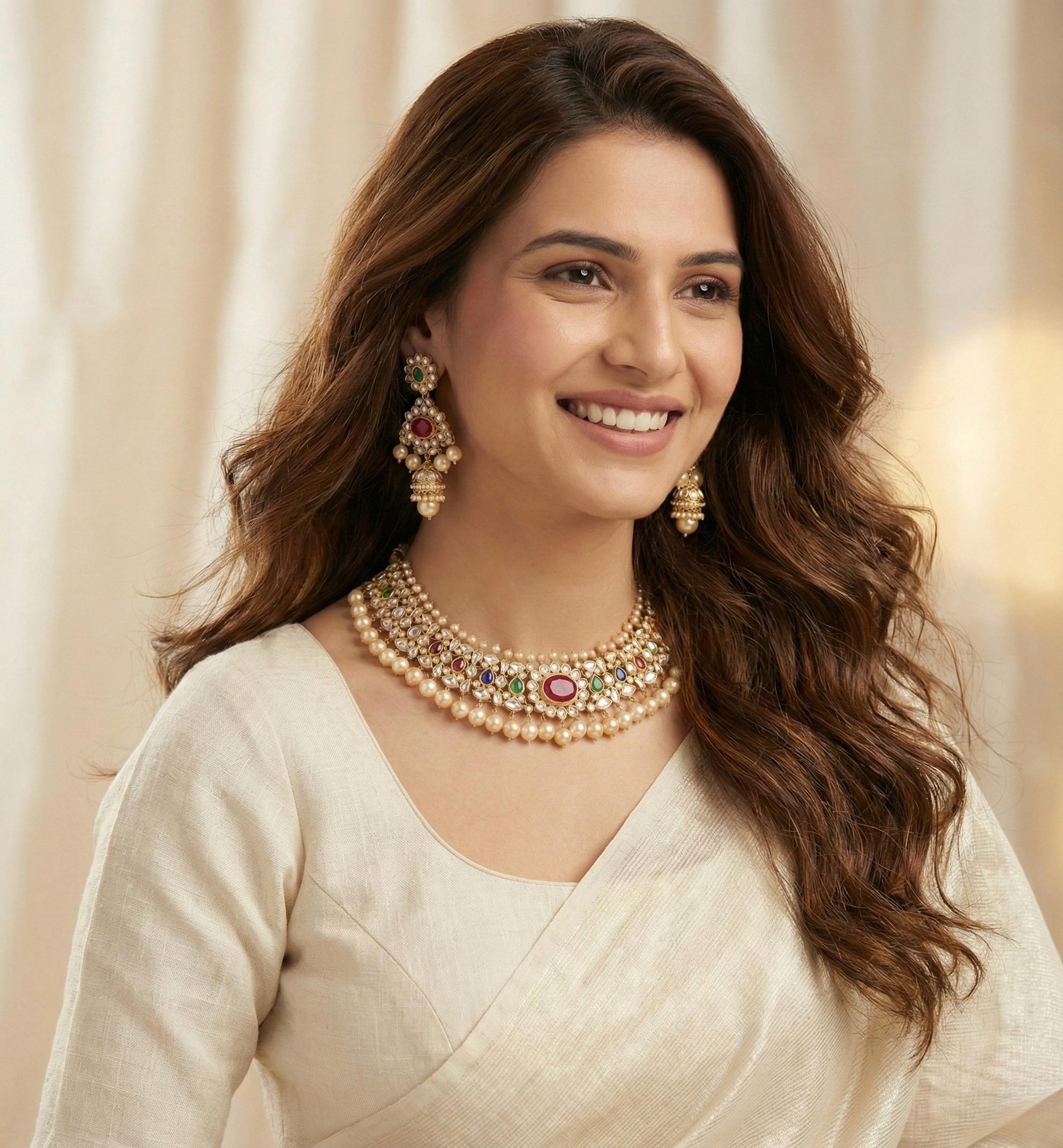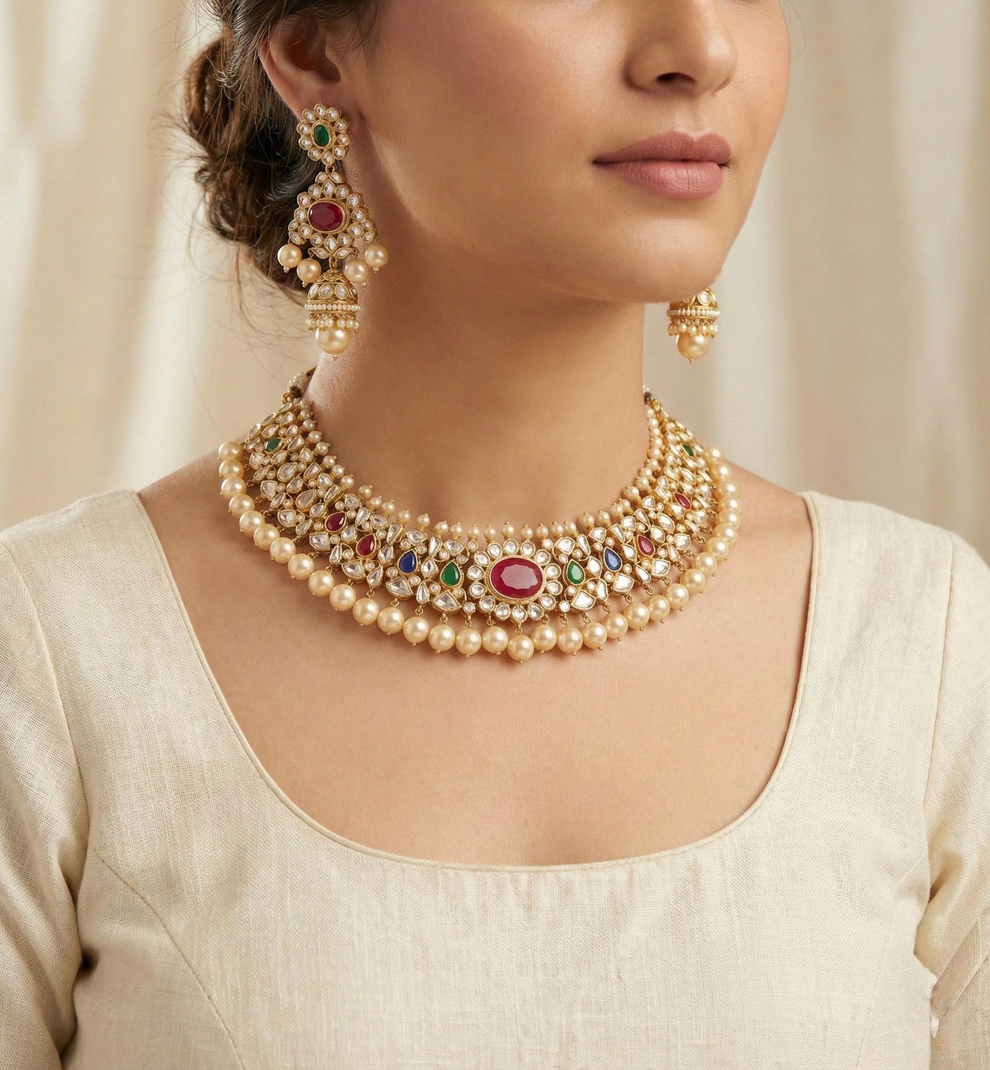• It’s beautiful Ethnic Indian Wedding Choker with Statement Earrings.