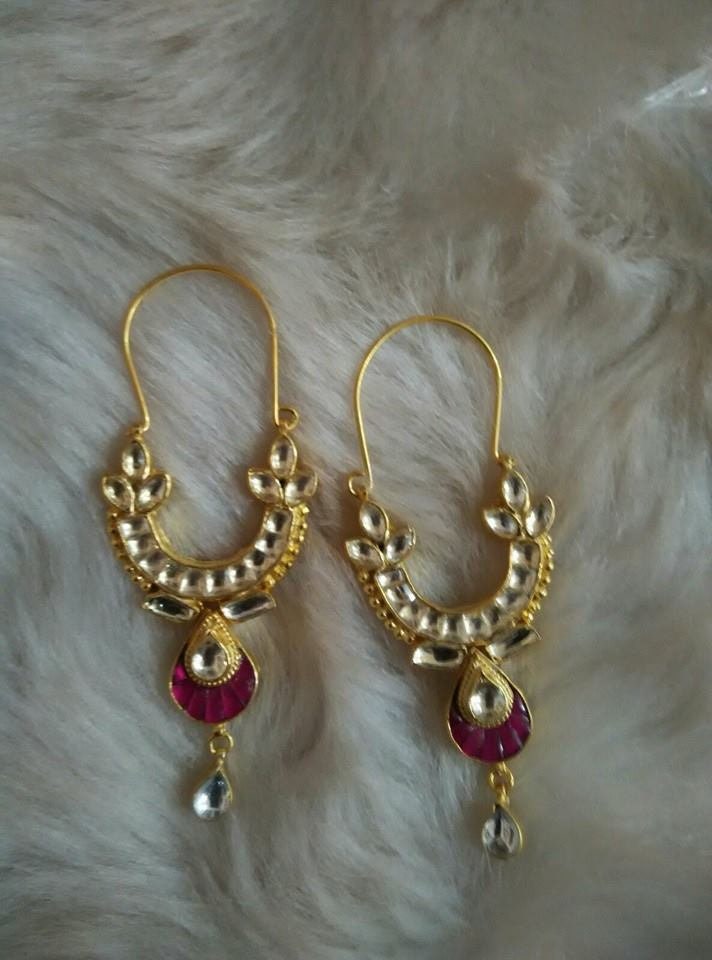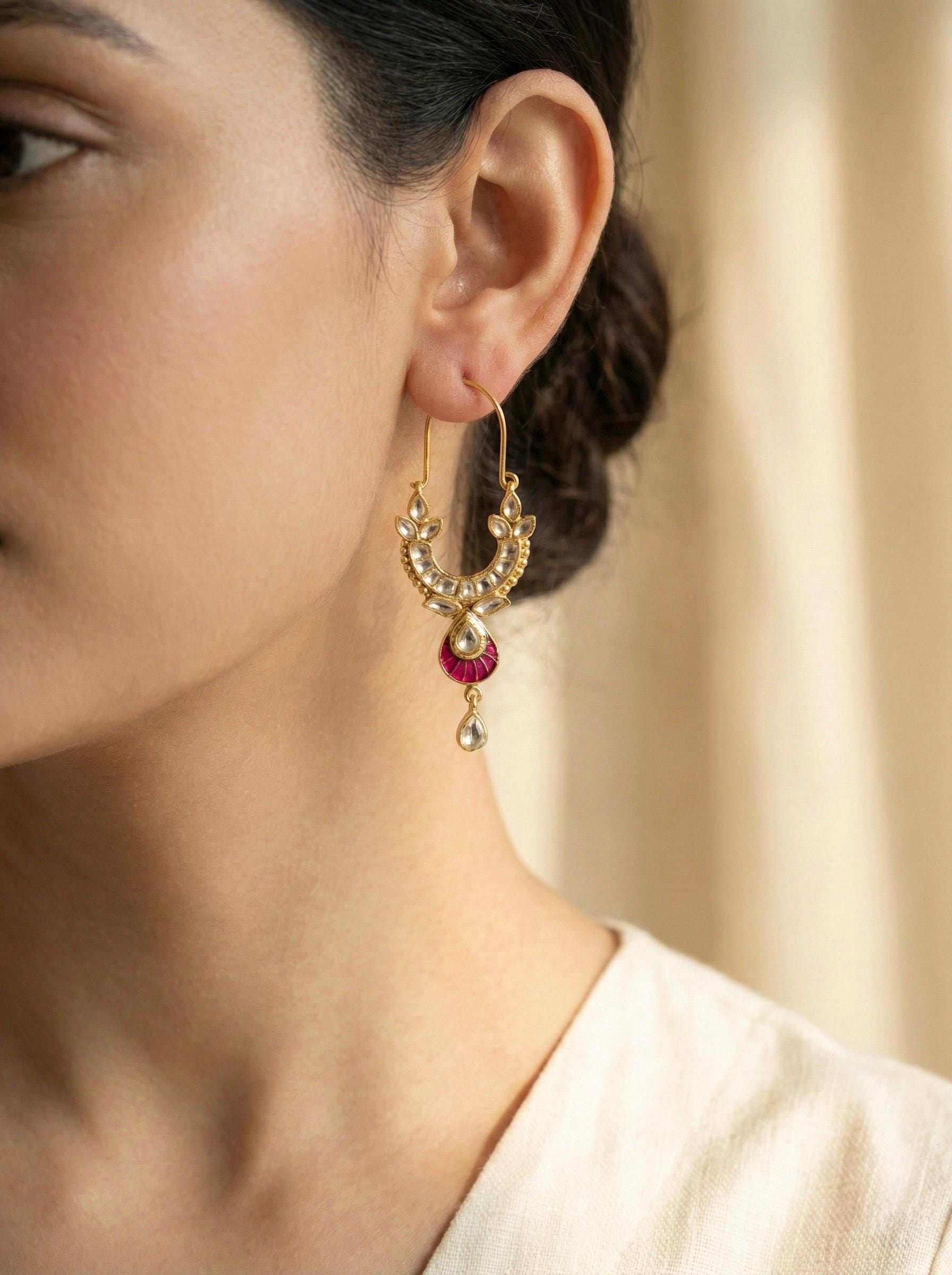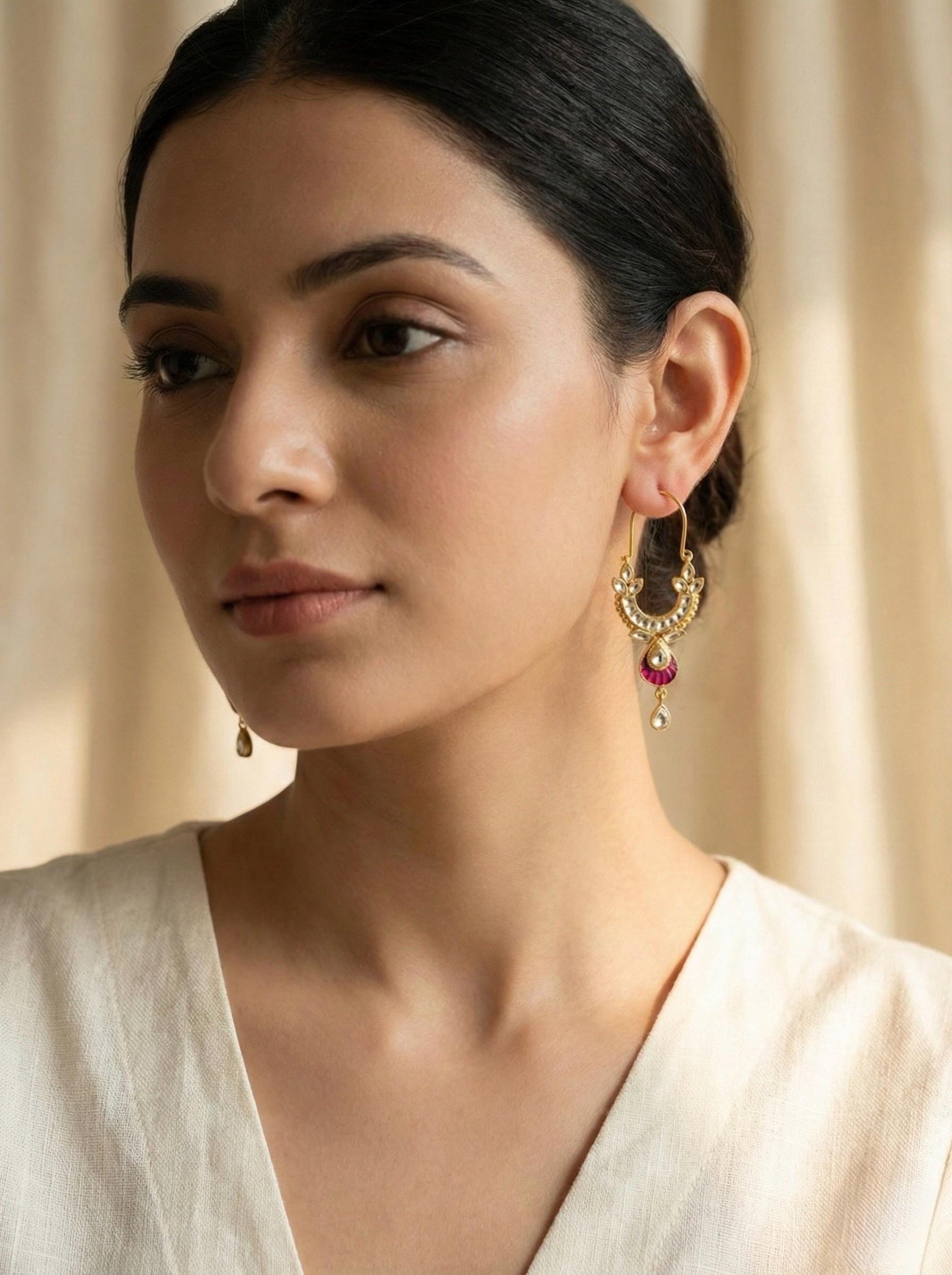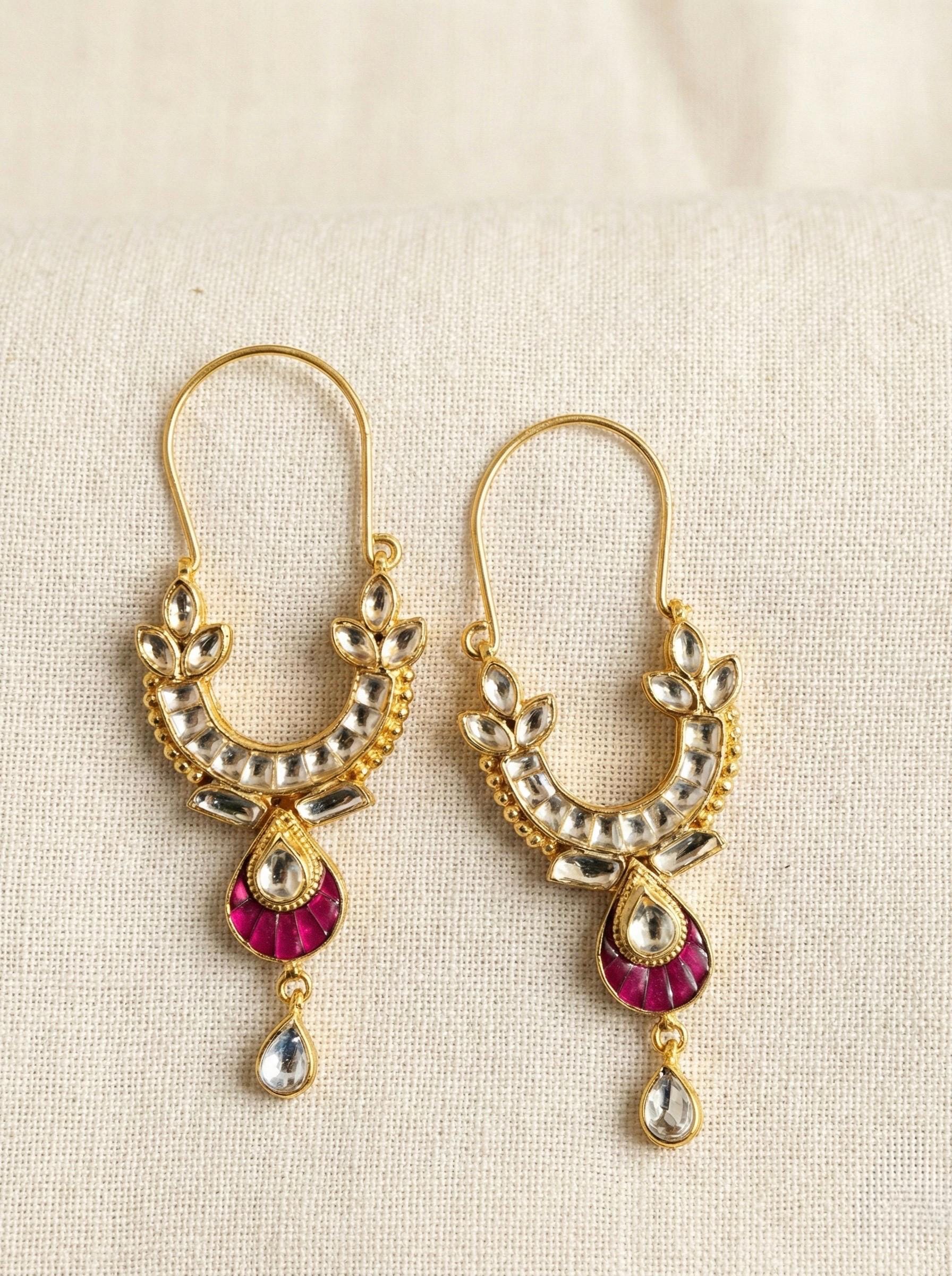 Indian Kundan Jewelry Designer Chandbali Earrings Ethnic wear Gold Tone Chand Bali for Indian Women and perfect match for all Bridal Outfits.