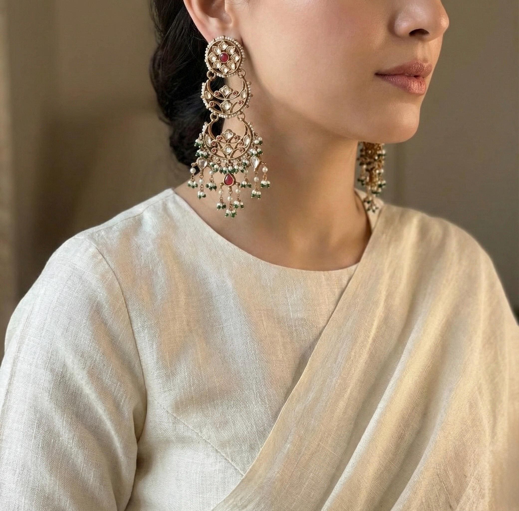 • Its Handmade Indian Chandbali Long Chandelier Kundan Earrings.