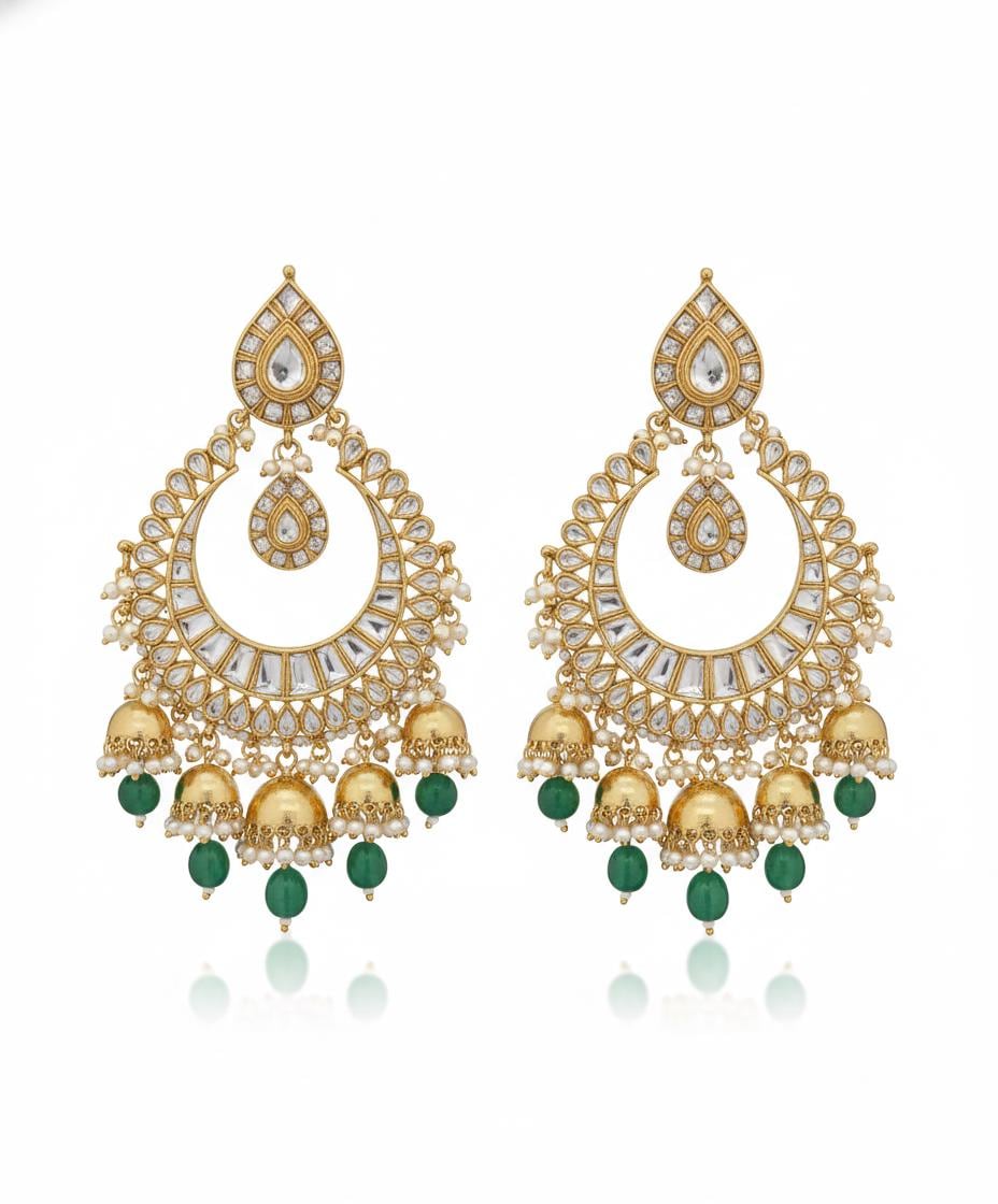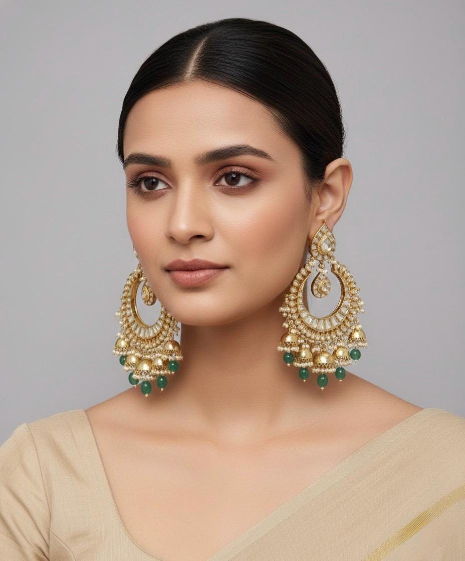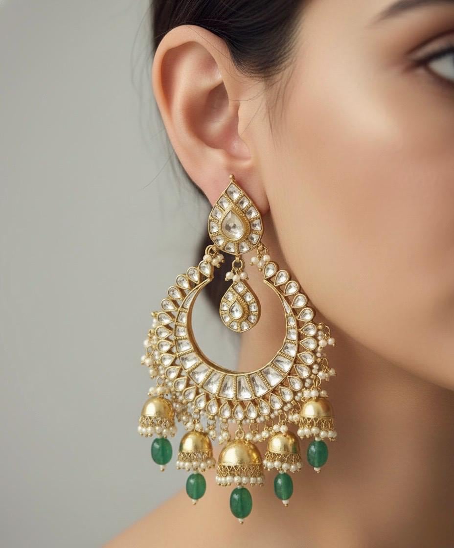 Inspired by Mughal-era jewellery, these Chandbalis are designed to frame the face beautifully while remaining comfortable for long celebrations. Whether paired with a saree, lehenga, or anarkali, they add instant grandeur and sophistication.