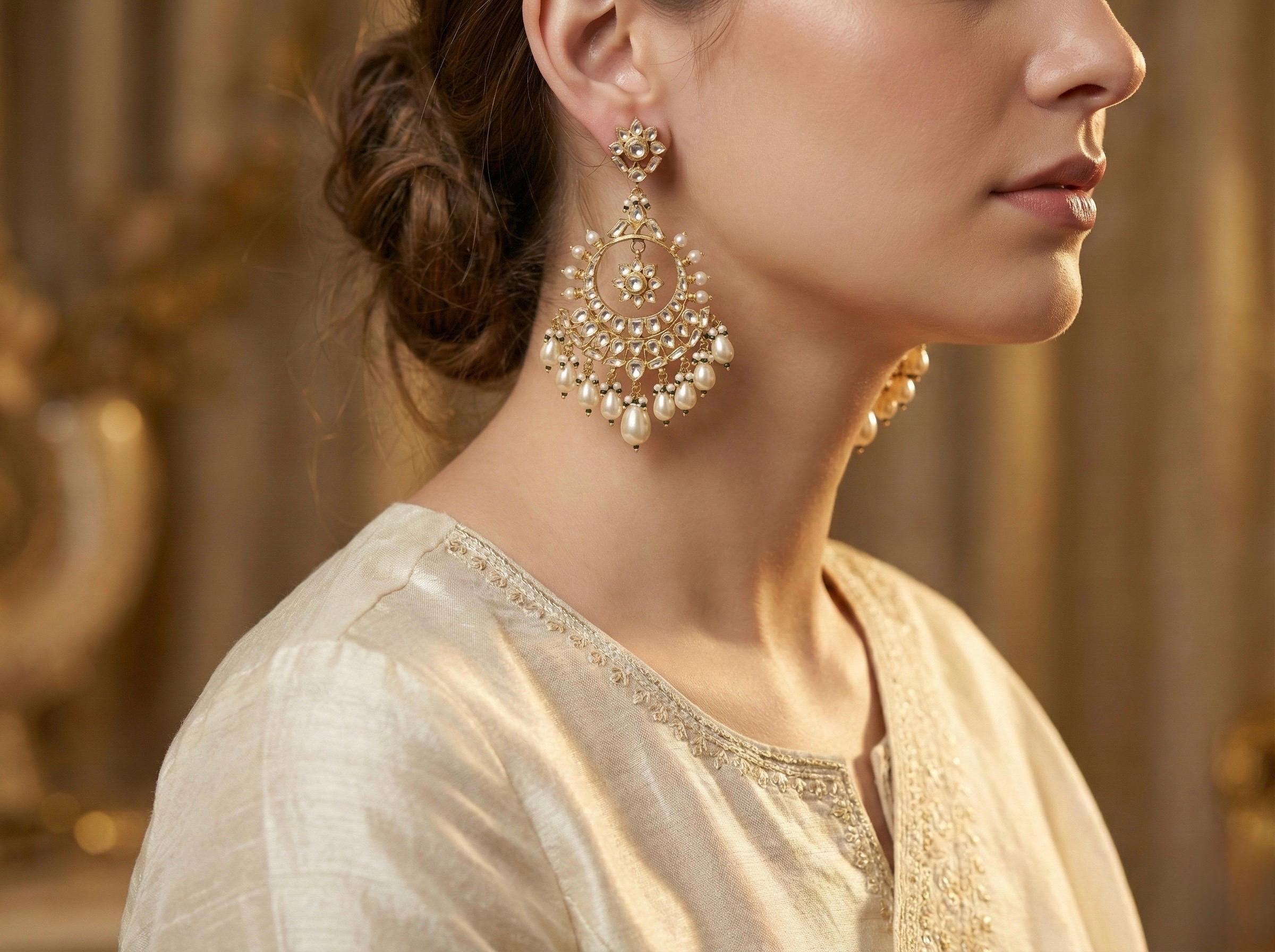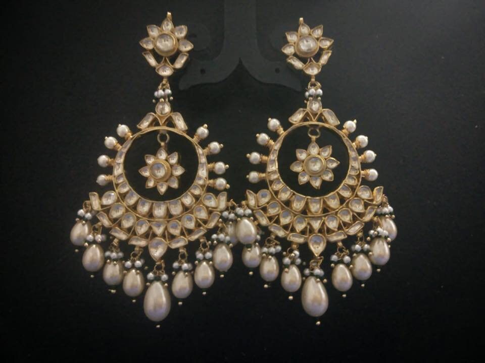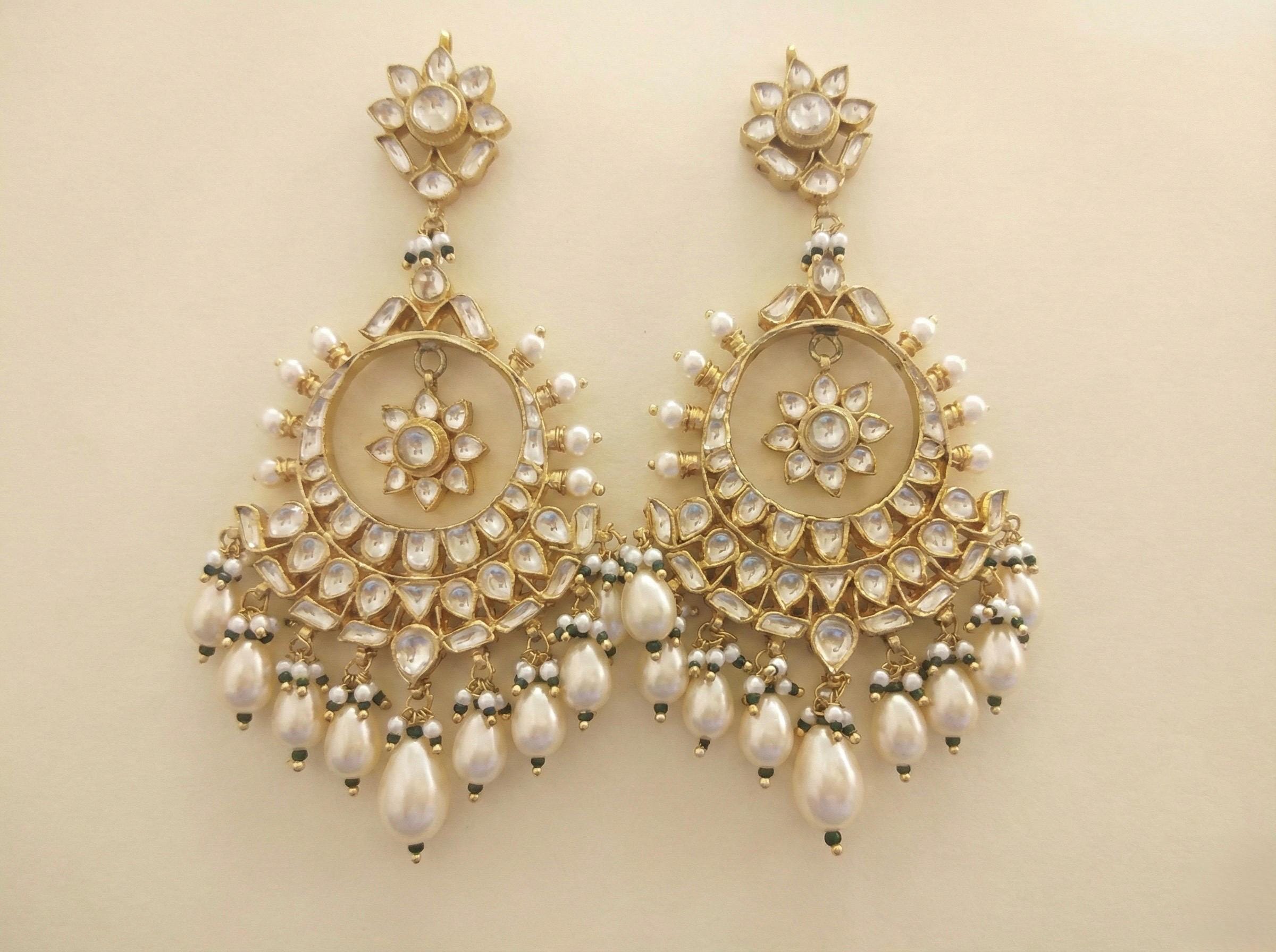 Indian Kundan Jewelry Designer Chandbali Earrings Ethnic wear Gold Tone Chand Bali for Indian Women and perfect match for all Bridal Outfits.