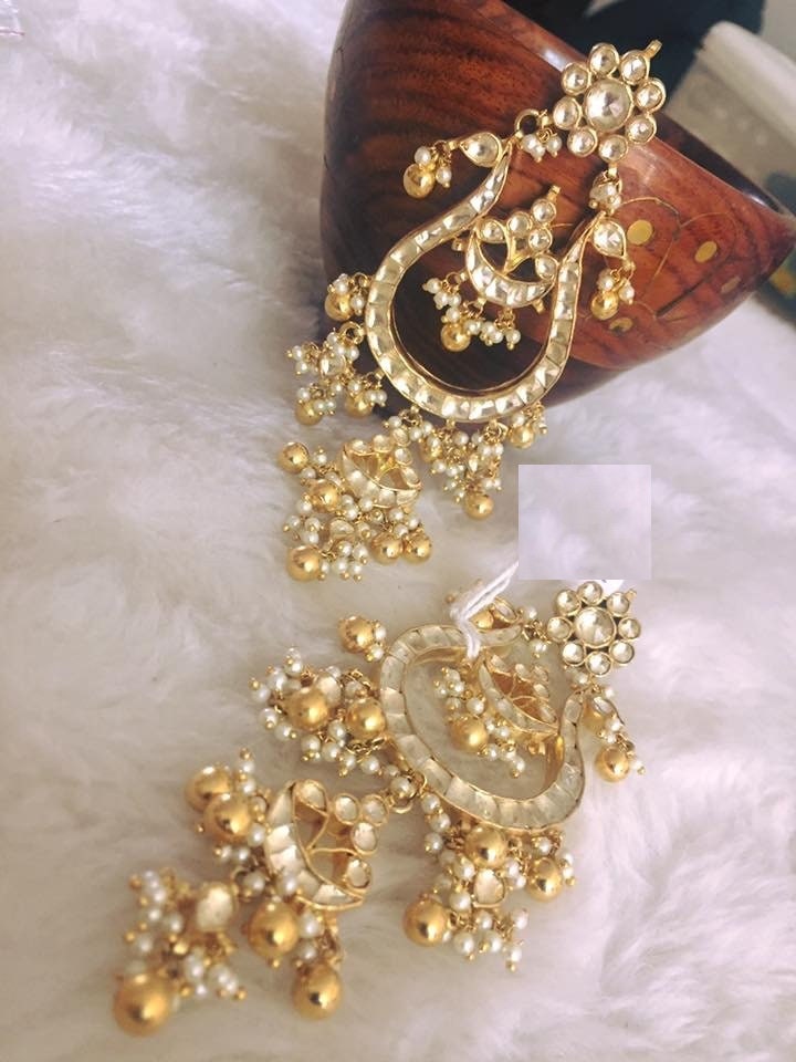Antique Gold Finish Silver Jewelry Statement Earrings Kundan Bridal Jewelry Earrings for Indian and Pakistani Brides for all Occasions.