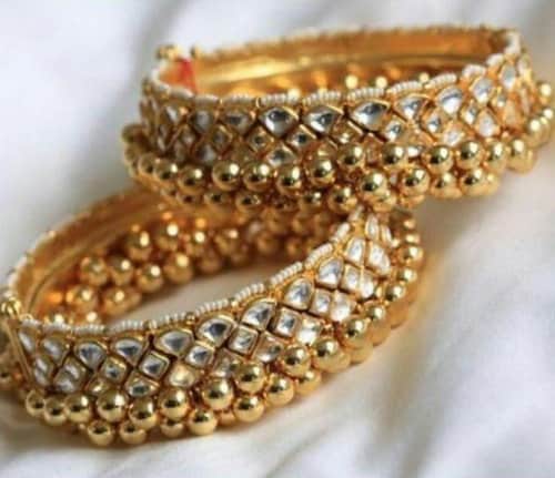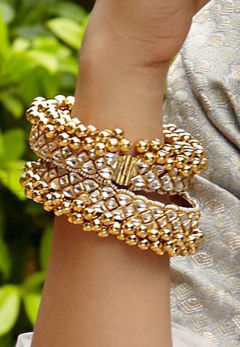 • This is Gold Finish Kundan Bangles Pair.Its Perfect for Wedding Occasion as well as Unique and Ethnic Traditional Bangle to gift and Also Bridal wear to match with Wedding Outfits.