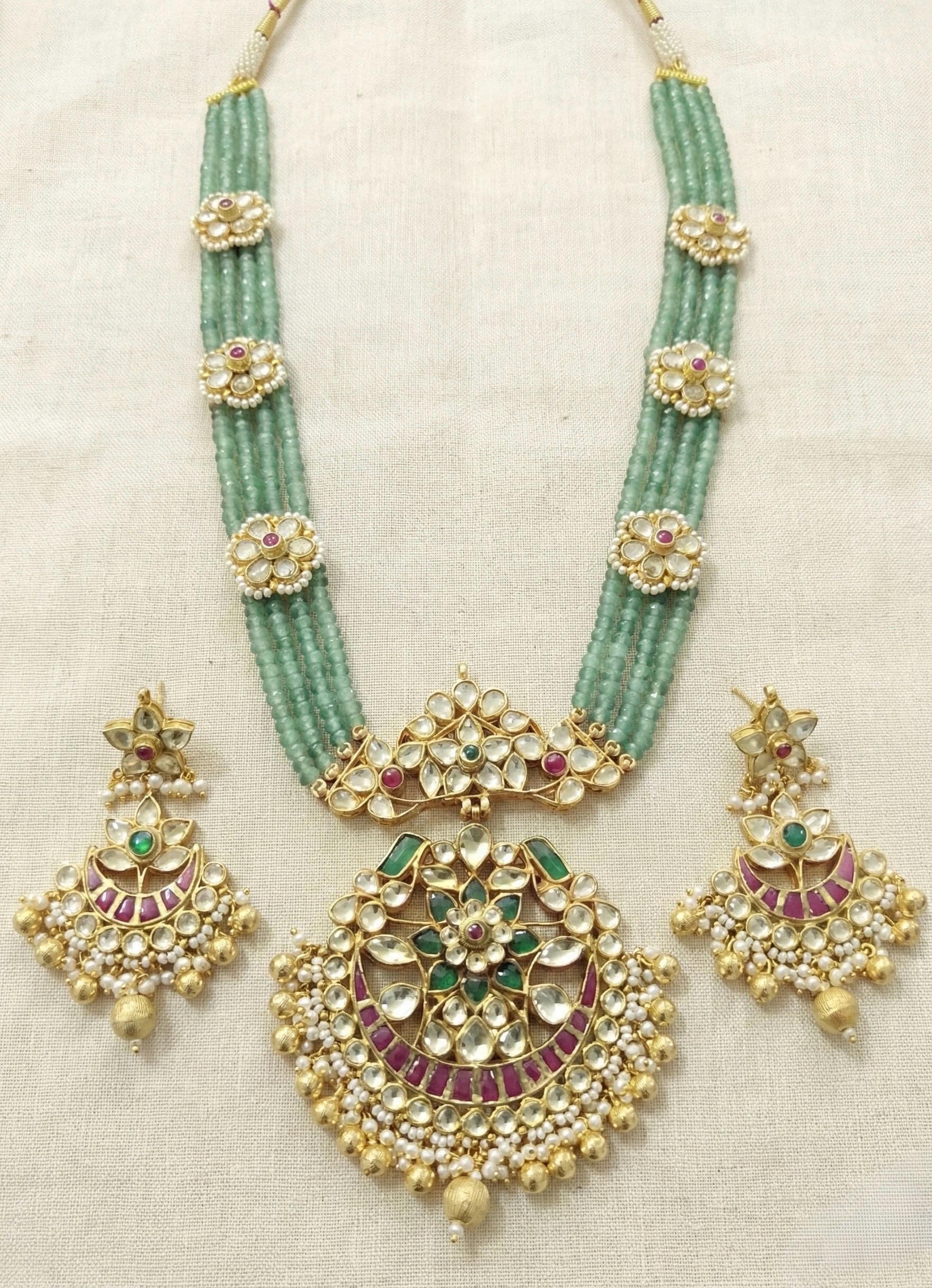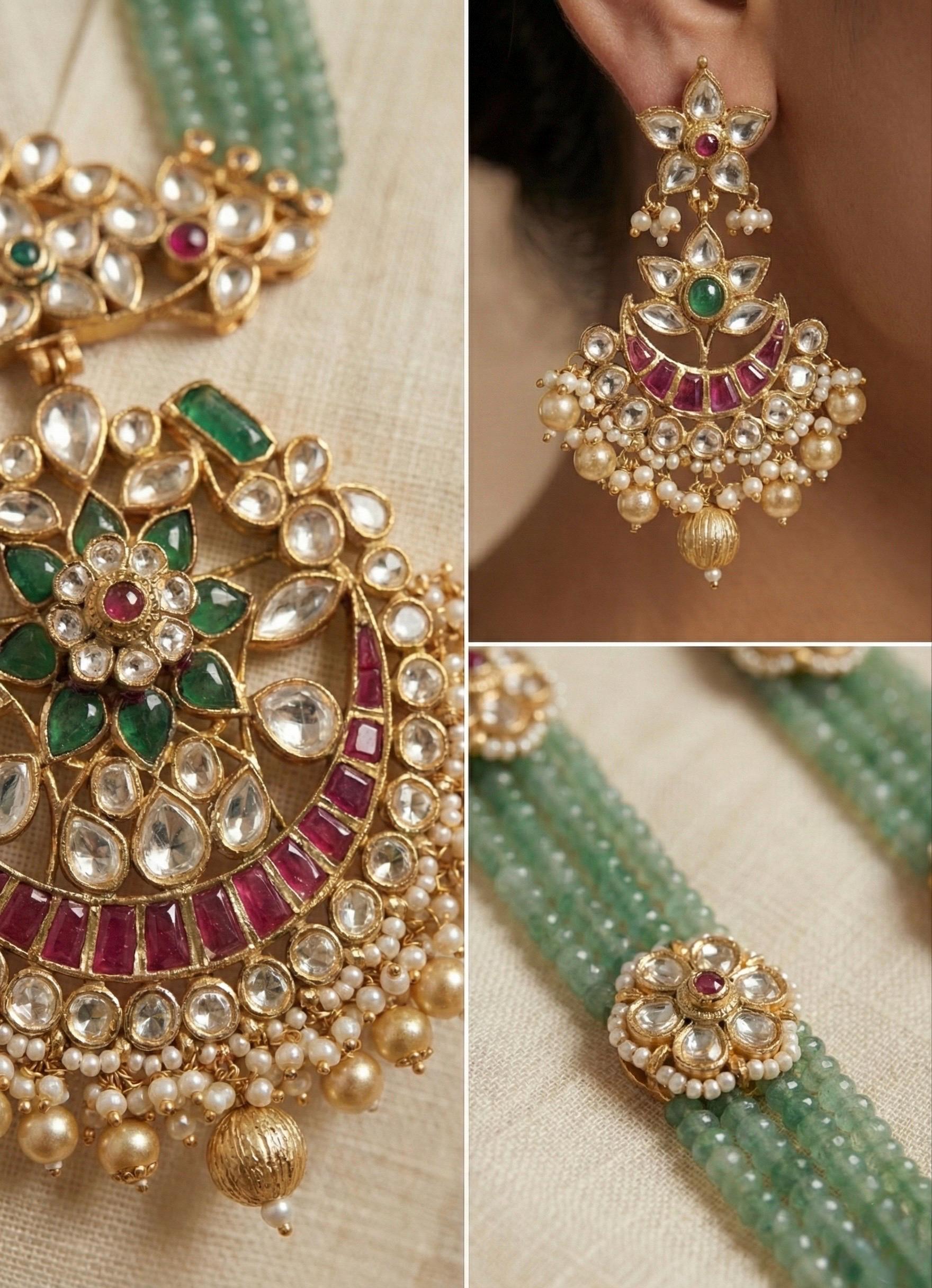 All of our Kundan Jewelry is 100% handmade and 22k Gold Plated with ancient Kundan stone setting method using silver foils. It is one of the most favorable jewelry since last some decades till present time for Indian as well as Asian Ethnic and Traditional Culture.