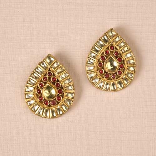 Kundan Wedding Jewellery Gold Finish Statement Kundan Stud Earrings for Indian Brides.