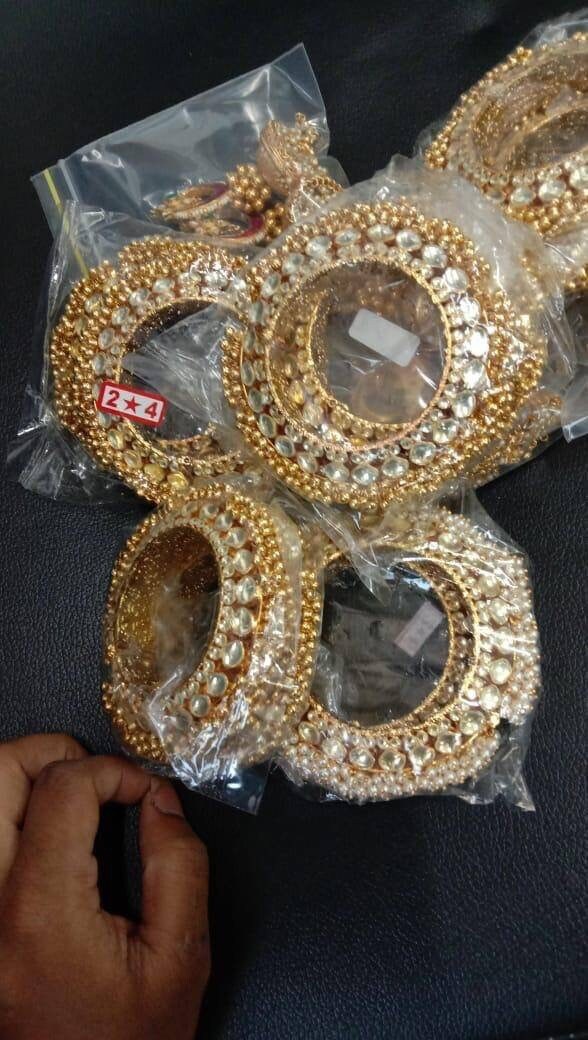 • This is Gold Finish Kundan Bangle Pair.Its Perfect for Wedding Occasion and is Unique and Ethnic Traditional Bangle to gift and also Bridal wear to match with Wedding Outfits.