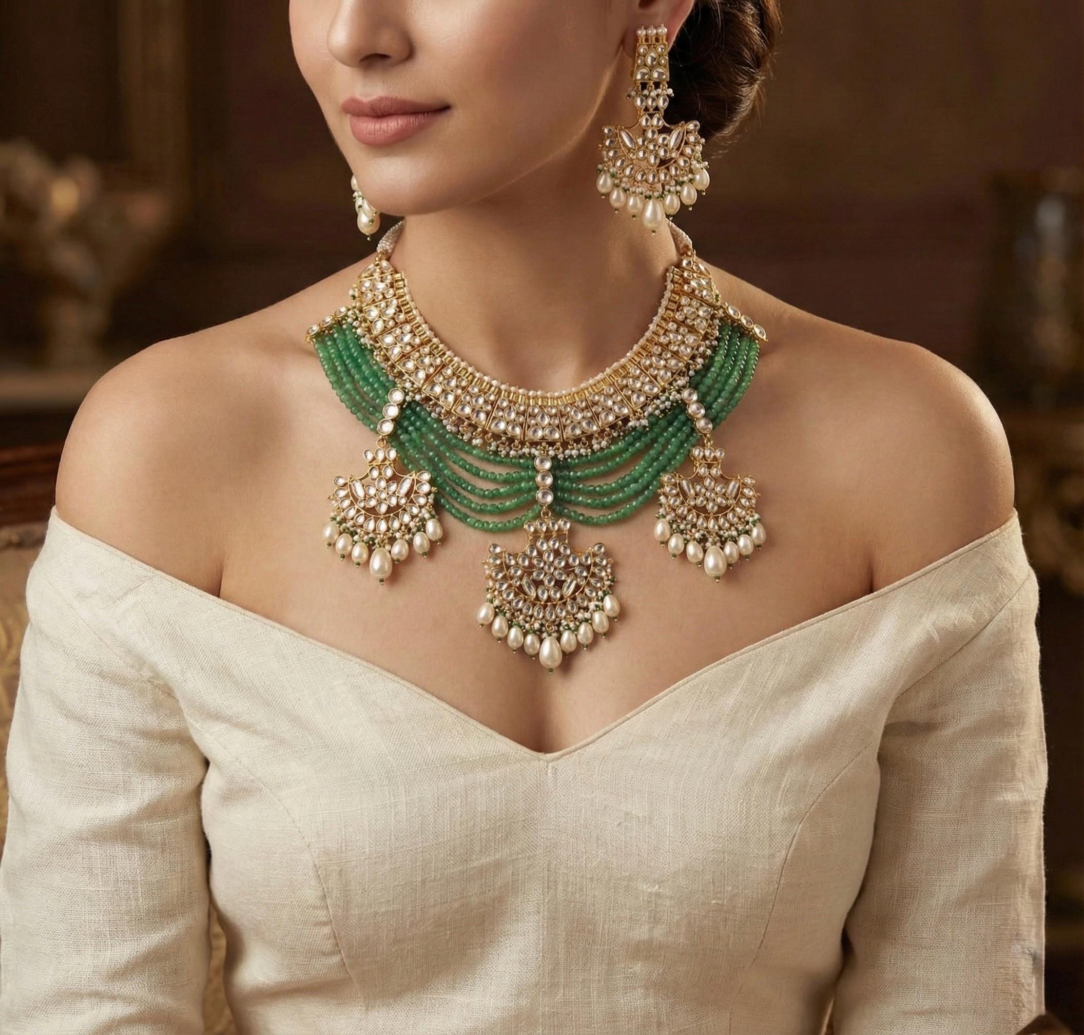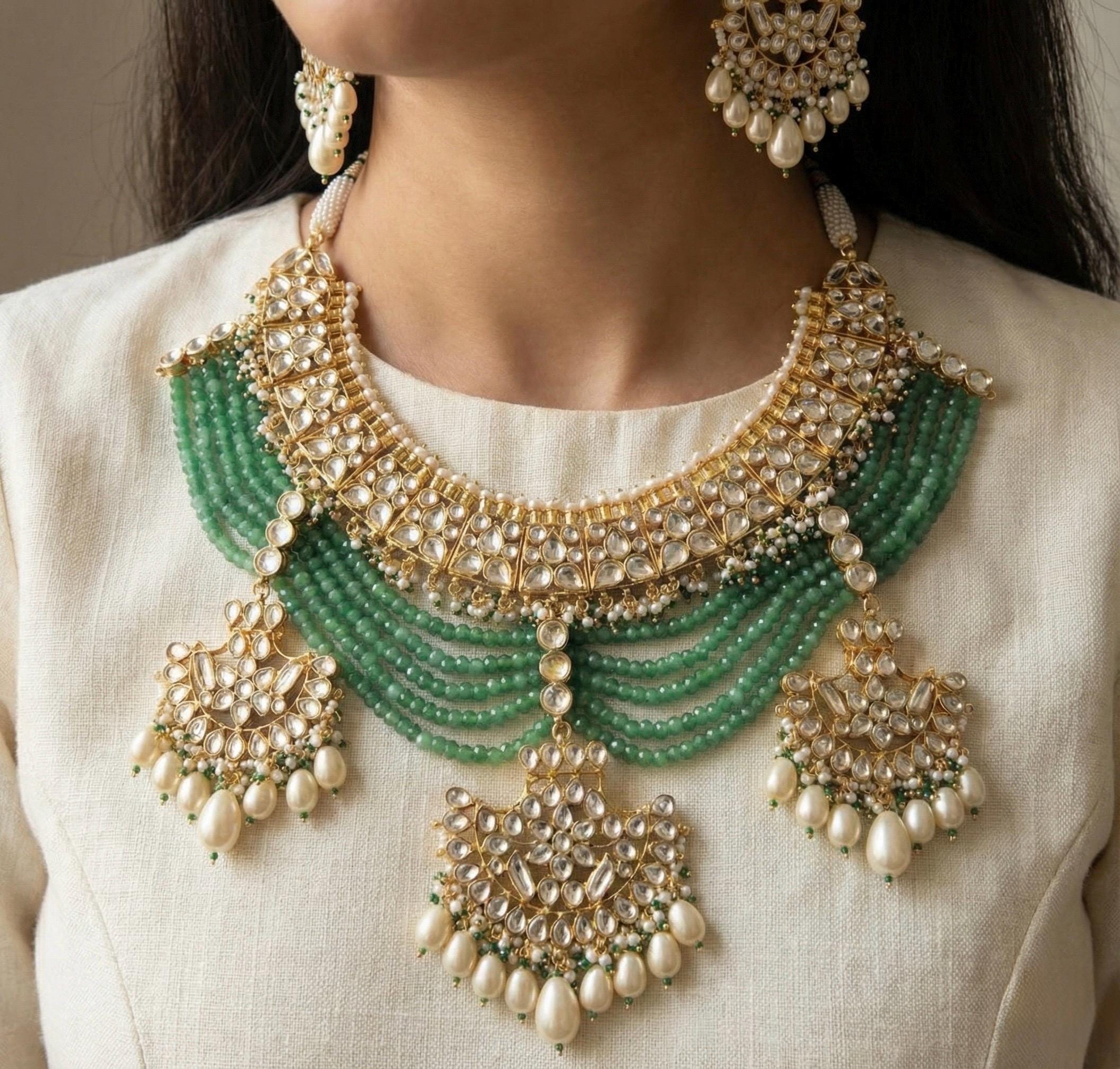 • It’s beautiful Ethnic Indian Wedding Choker with Statement Earrings.