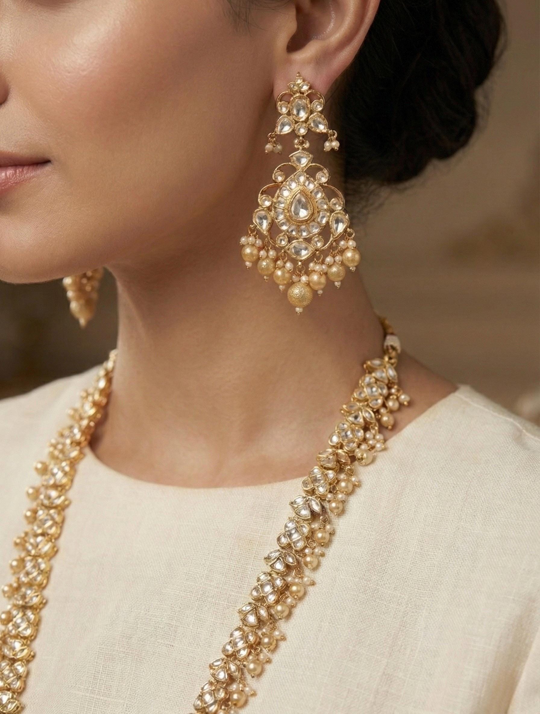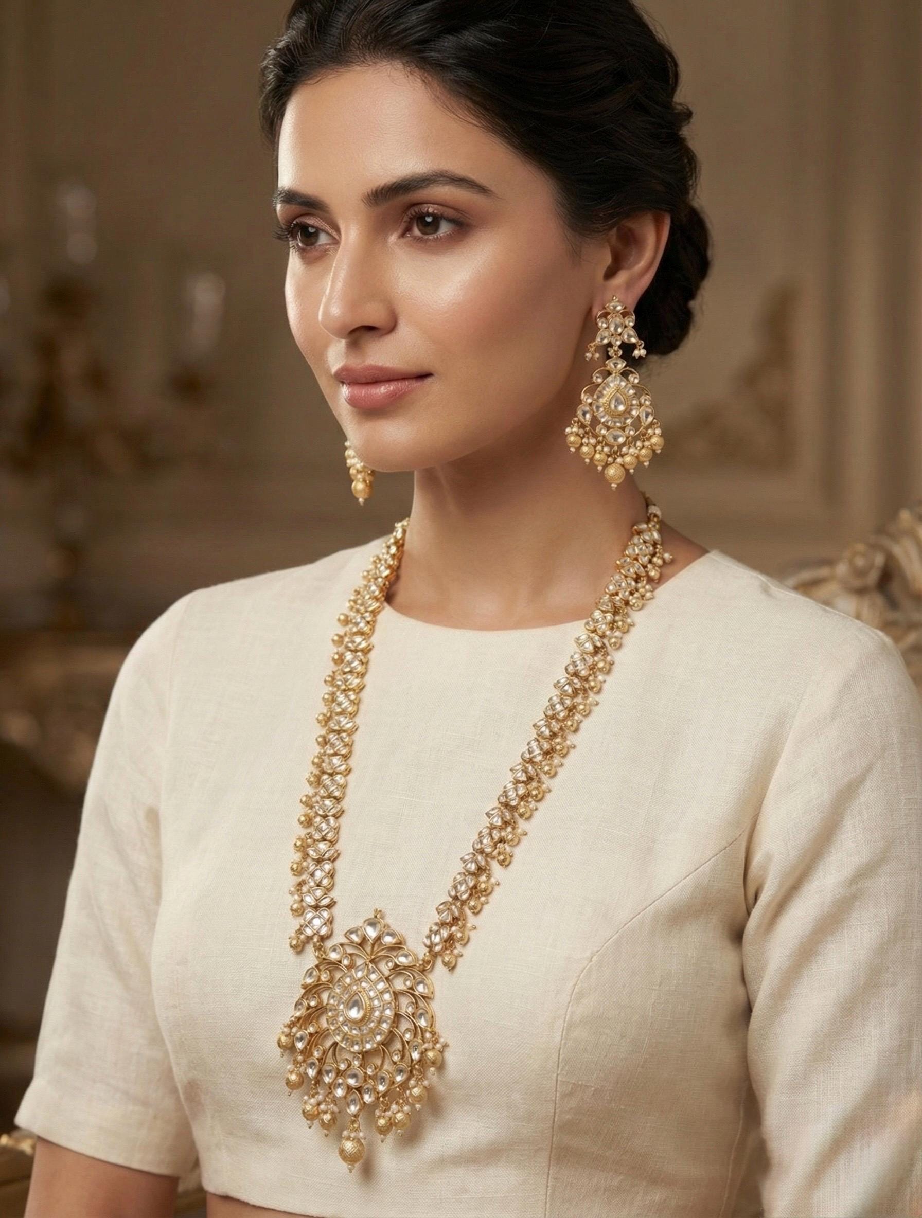 Discover exquisite Indian handcrafted Kundan jewellery sets and Kundan Chandbali earrings with 22K gold plating, now loved across the UK for their royal elegance and timeless craftsmanship. Our authentic Kundan designs, inspired by Indian bridal heritage, are perfect for weddings, festive occasions, and ethnic celebrations, making them a top choice for customers in London, Birmingham, Manchester, Leicester, Bradford, Leeds, Nottingham, Coventry, Wolverhampton, Slough, Luton, Wembley, Southall, Harrow, Ilford, and Hounslow. Each piece features finely set stones, rich gold-plated detailing, and traditional artistry that blends beautifully with modern fashion. Ideal for Indian, Pakistani, and South Asian communities in the UK, these 22K gold plated Kundan jewellery sets and Chandbali earrings add a luxurious statement to bridal wear, sarees, lehengas, and anarkalis, while also appealing to those searching online for premium ethnic jewellery in the United Kingdom.