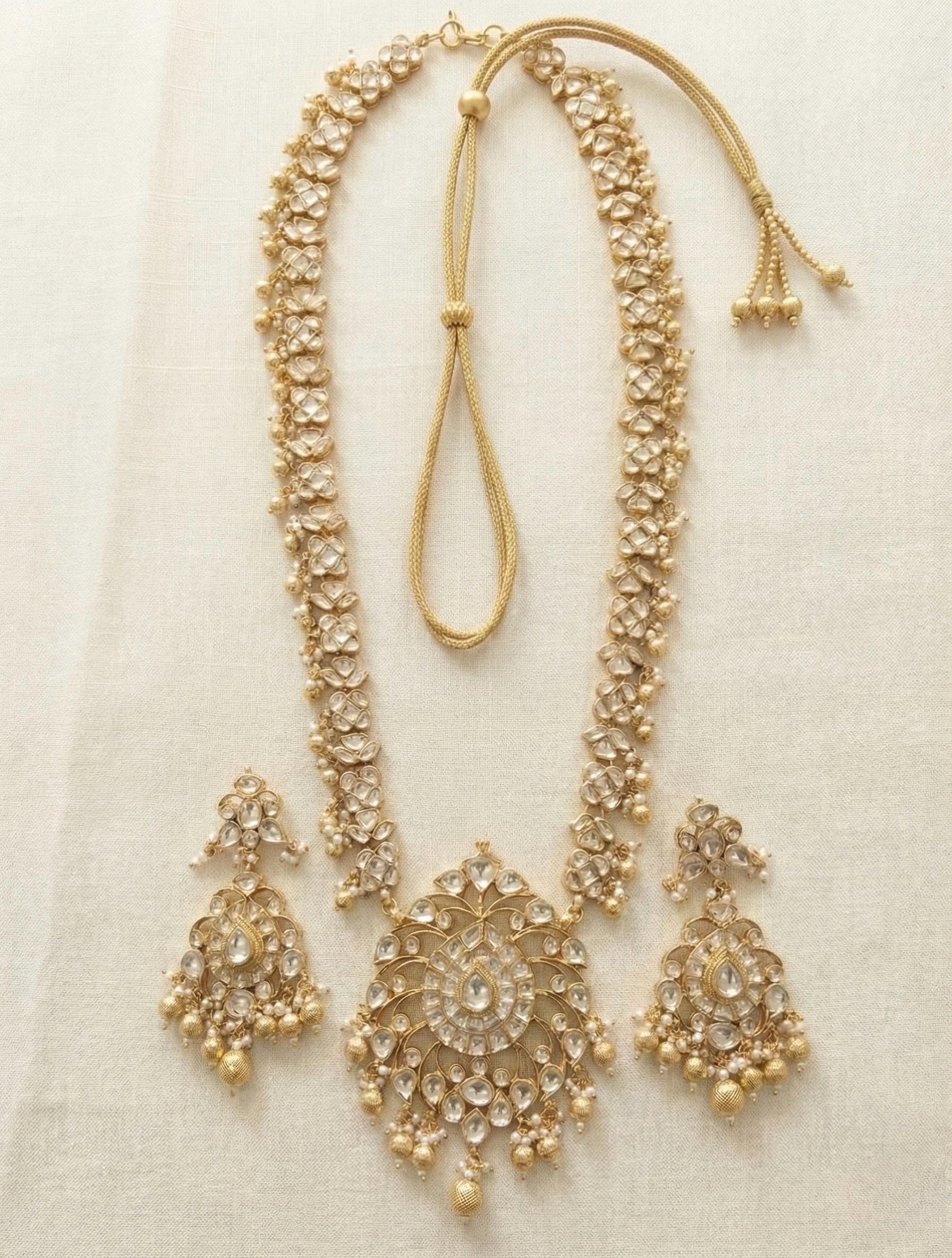 • It’s beautiful Ethnic Indian Wedding Long Ranihaar Necklace with Statement Earrings.