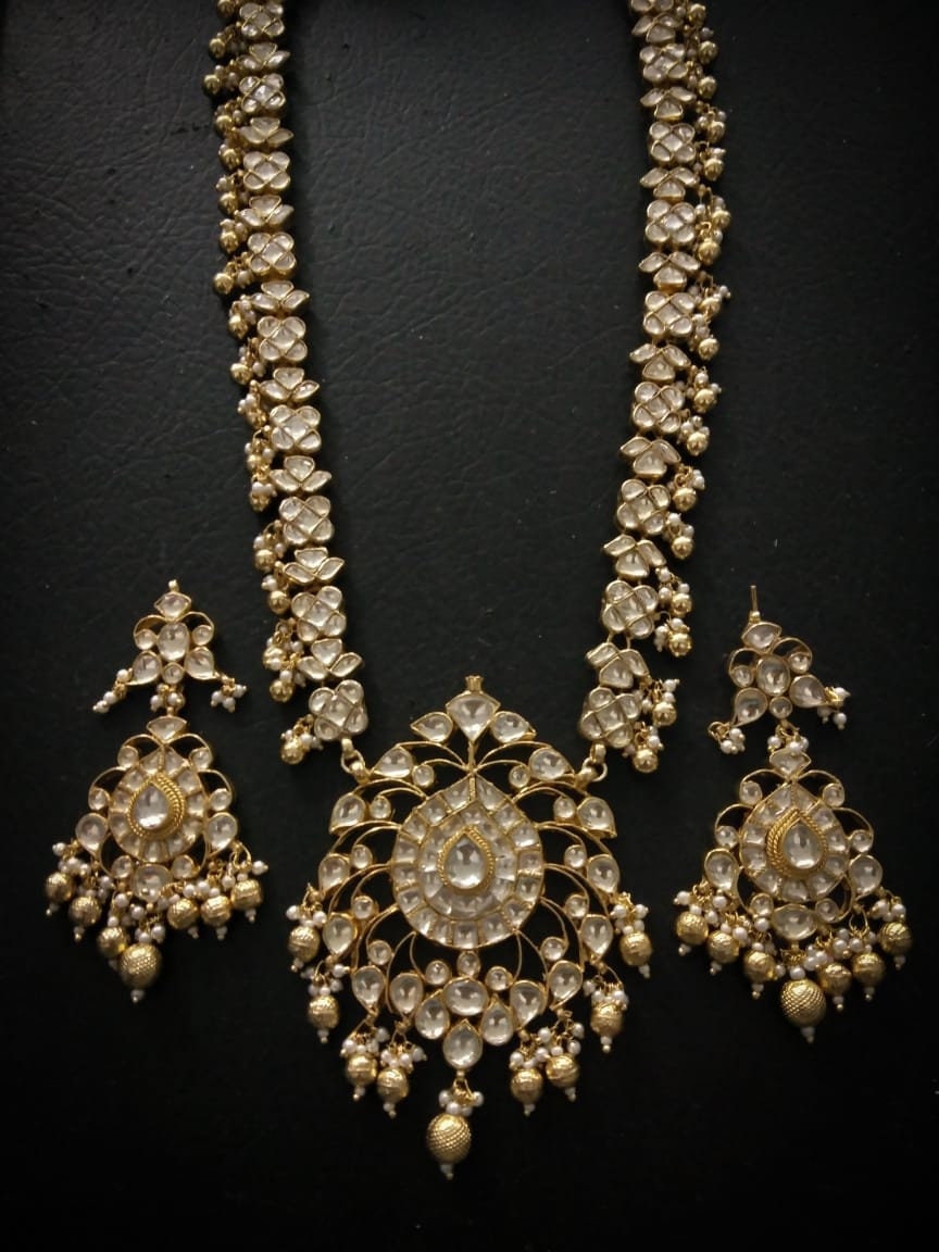 • Handmade Gold Plated Indian Kundan Jewelry Necklace and Earrings Set.
