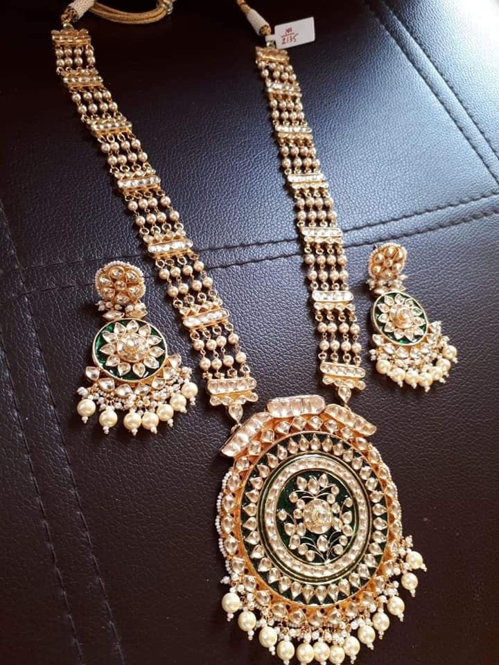 • It’s beautiful Ethnic Indian Wedding Long Ranihaar Necklace with Green Enameled and Statement Earrings.