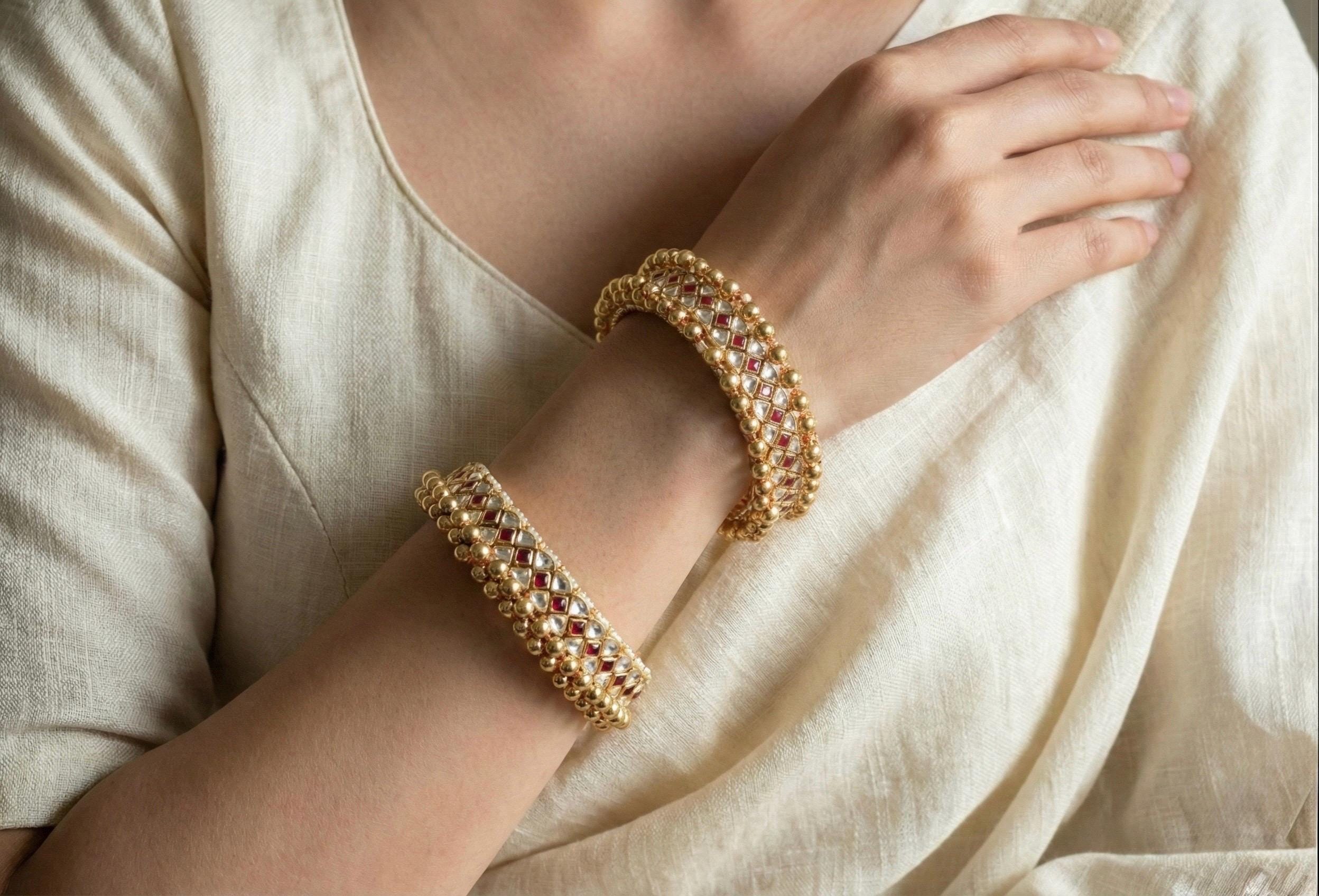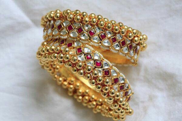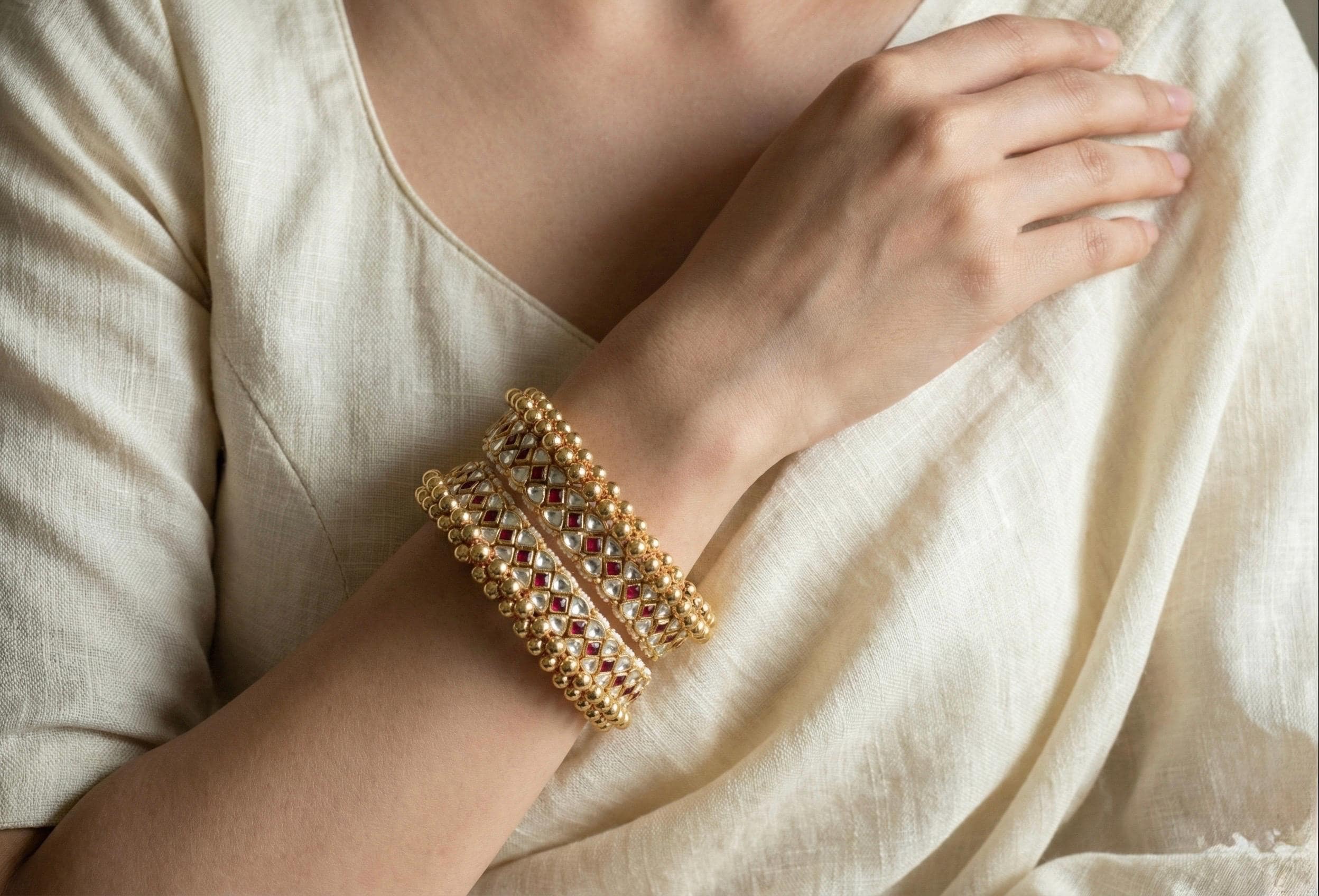 • 22k Gold Plated Kundan Bangles perfect for Wedding Occasion as well as Gift and Bridal wear to match with Wedding Outfits.
