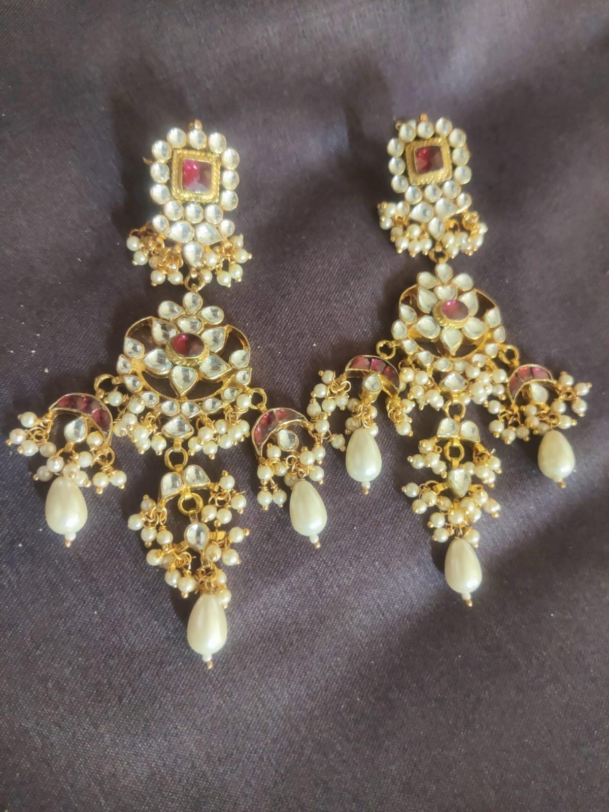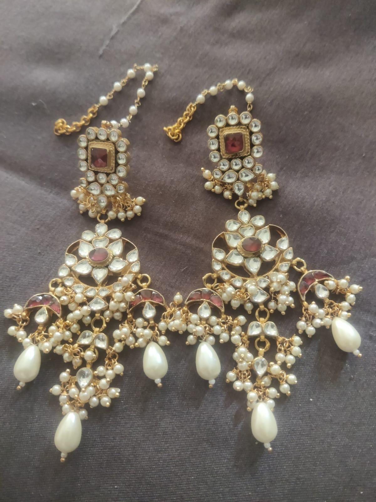 • It’s Handmade Indian Ethnic Kundan Earrings with beautiful Rhodolite and White kundan settings.