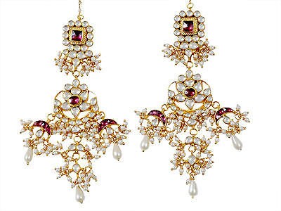 Indian Kundan Statement Earrings with Gold Plating for Indian and Pakistani Brides.Its worn by Actress Kangna Ranaut In Movie Tannu weds Manu.